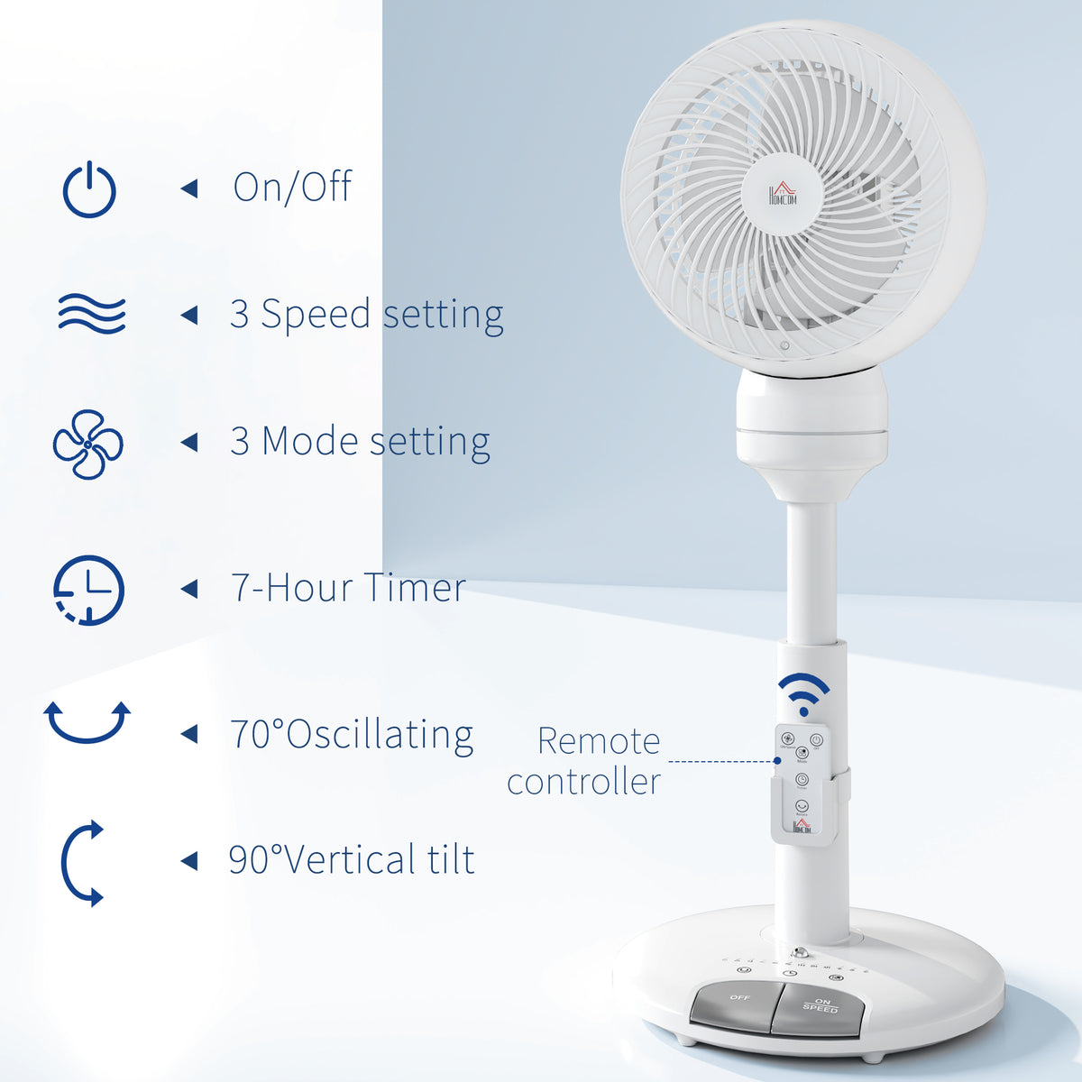 HOMCOM 9'' Air Circulator Fan 3 Speed 3 Mode, 70° Oscillation 90° Vertical Tilt, Remote Controller, for Living Room, Bedroom, Office, White - White