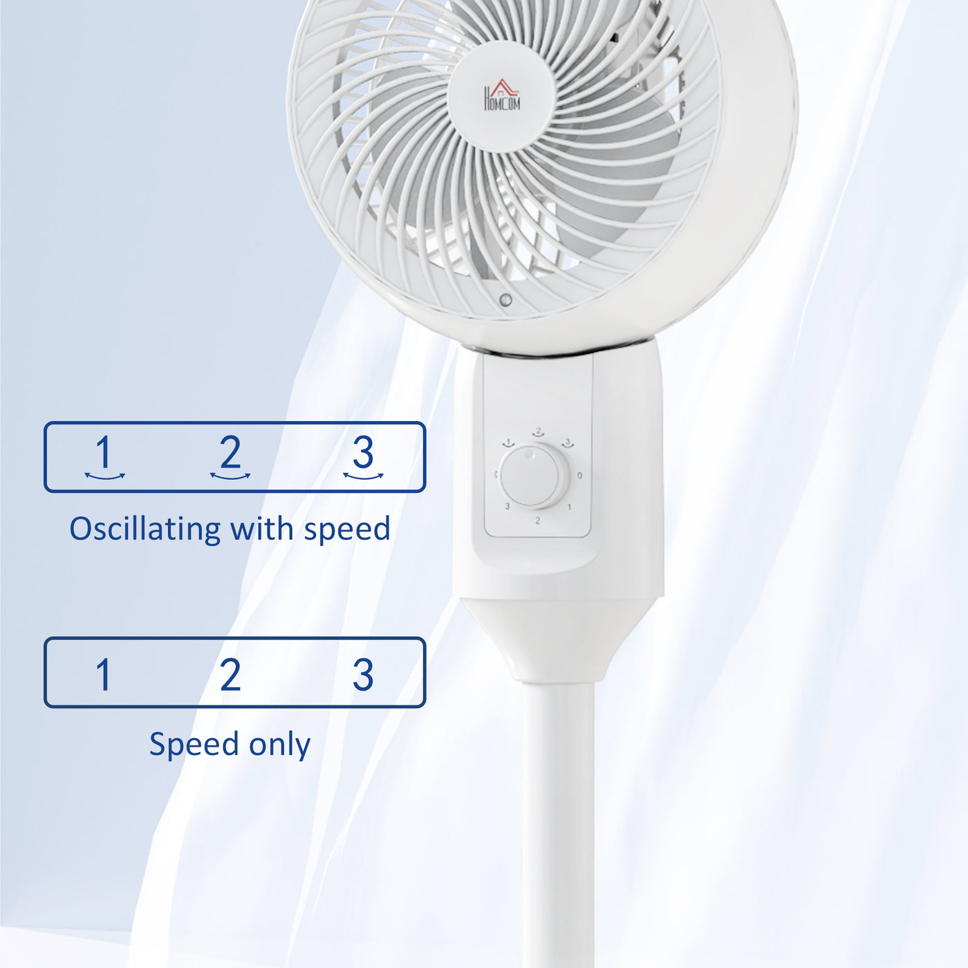 HOMCOM 9" Pedestal Fan, 70° Oscillation 90° Vertical Tilt Oscillating Air Circulator with 3 Speeds, Standing Fan for Home Office, Bedroom, White - White