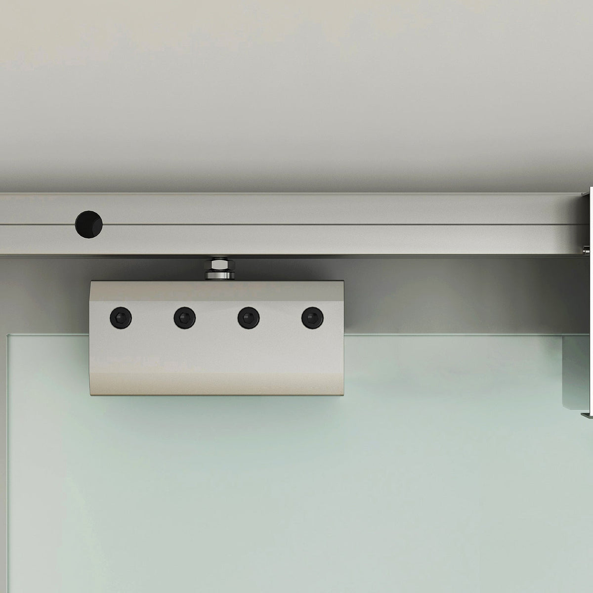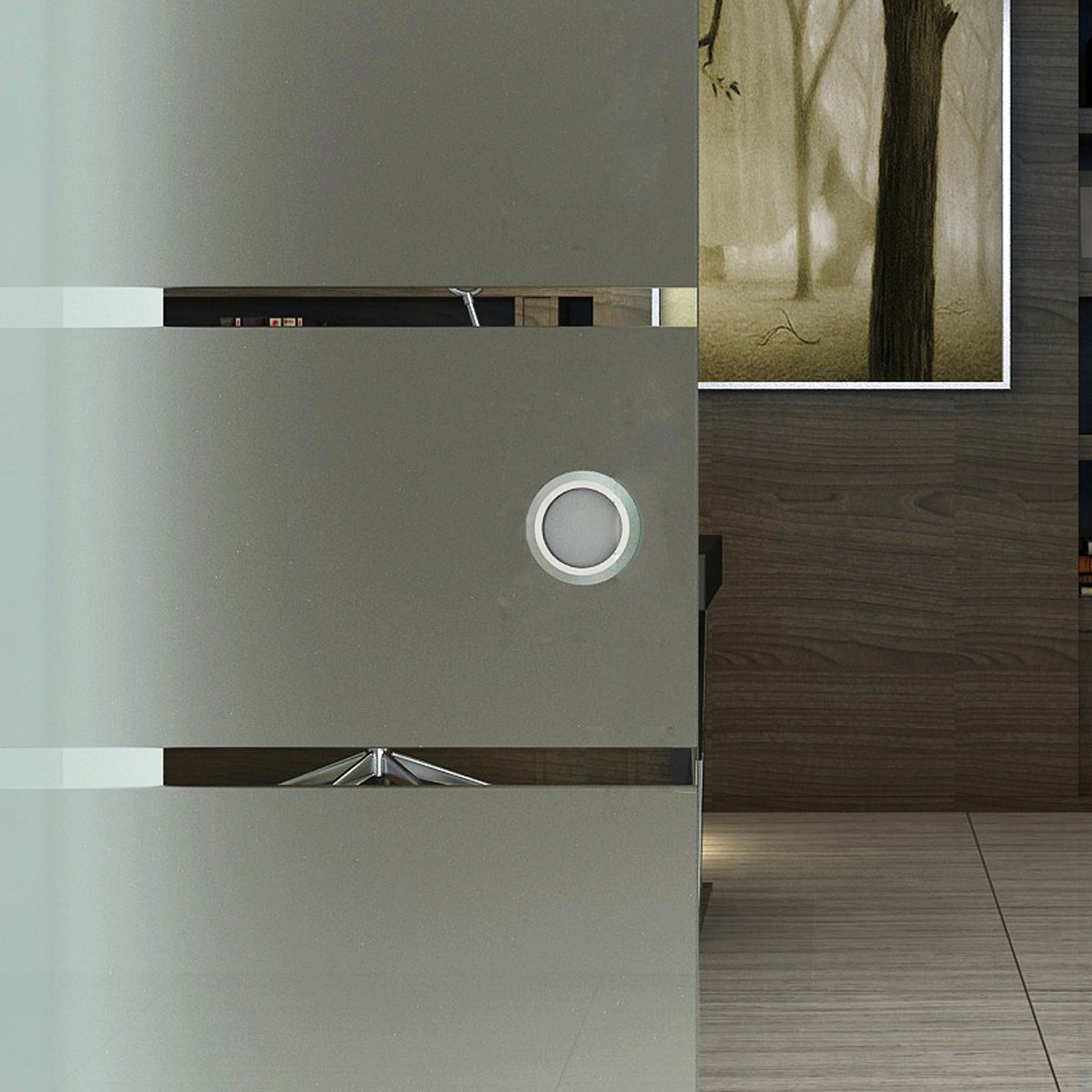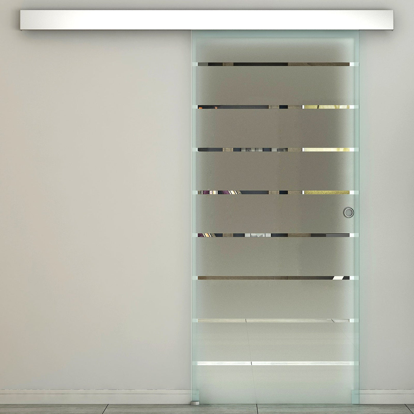 HOMCOM 90cm Sliding Glass Door with Hardware Track Kit, Frosted Tempered Glass with Stripe Pattern, Round Handle - Semi Opaque Stripe