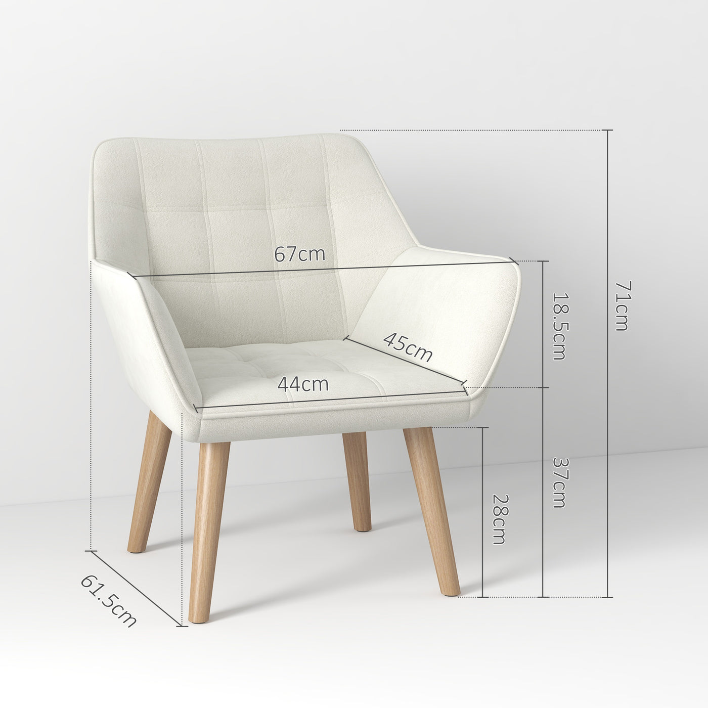 HOMCOM Accent Chair, Arm Chair with Wide Arms, Slanted Back, Thick Padding and Rubber Wooden Legs for Living Room, Cream White - Cream