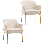 HOMCOM Accent Chair, Living Room Armchair, Vanity Chair with Gold Plating Metal Legs and Soft Padded Seat for Bedroom and Café, Set of 2, White - Cream