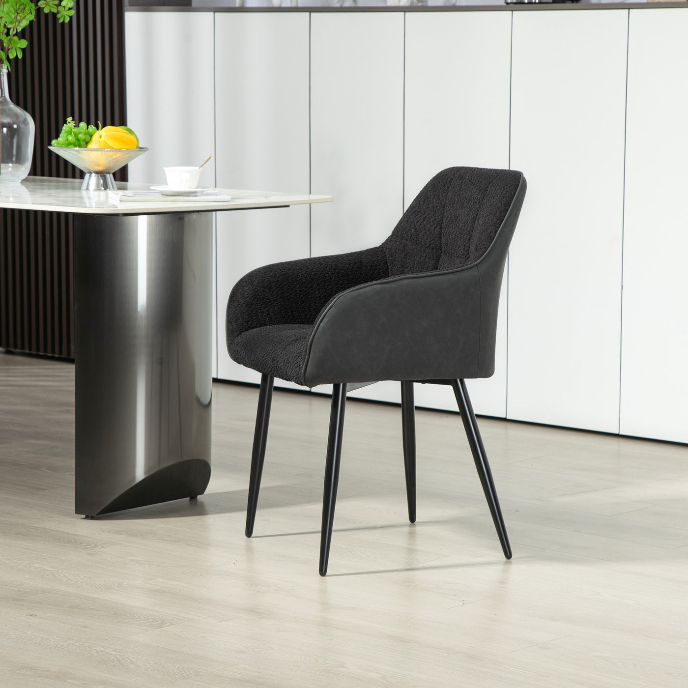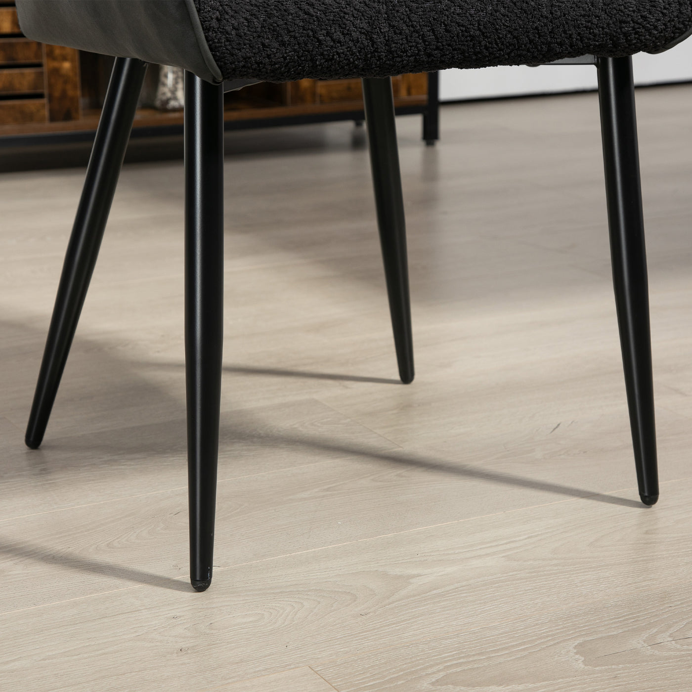 A soft stylish spot for wherever you want in the home, with this HOMCOM dining chair. Take it beyond the traditional dining room and use in the bedroom, hallway, lounge or similar. Thanks to the inner filling it's comfortableand thanks to the tall back and arms, your body will be supportive. The seat is wrapped in soft chenille, complete with a faux leather back for a touch of style.