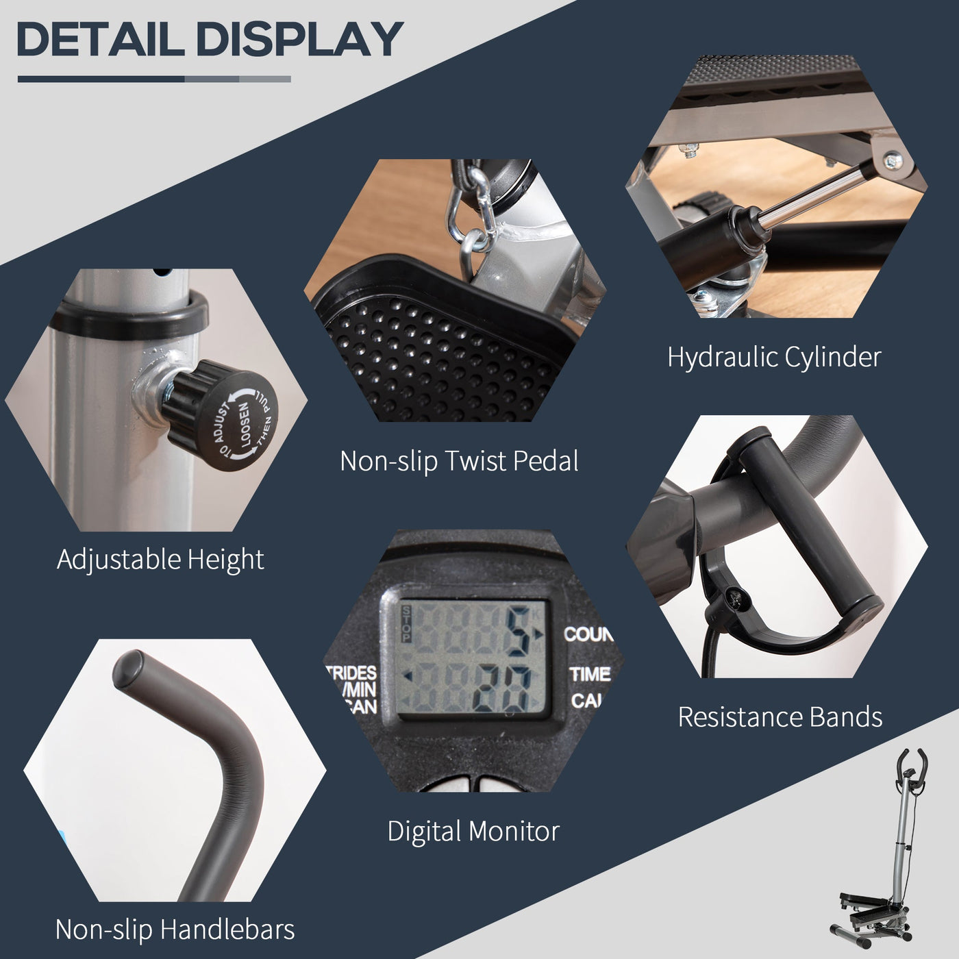 HOMCOM Adjustable Twist Stepper Fitness Step Machine, LCD Screen, Height-Adjust Handlebars, Home Gym, Silver and Black - Silver and Black
