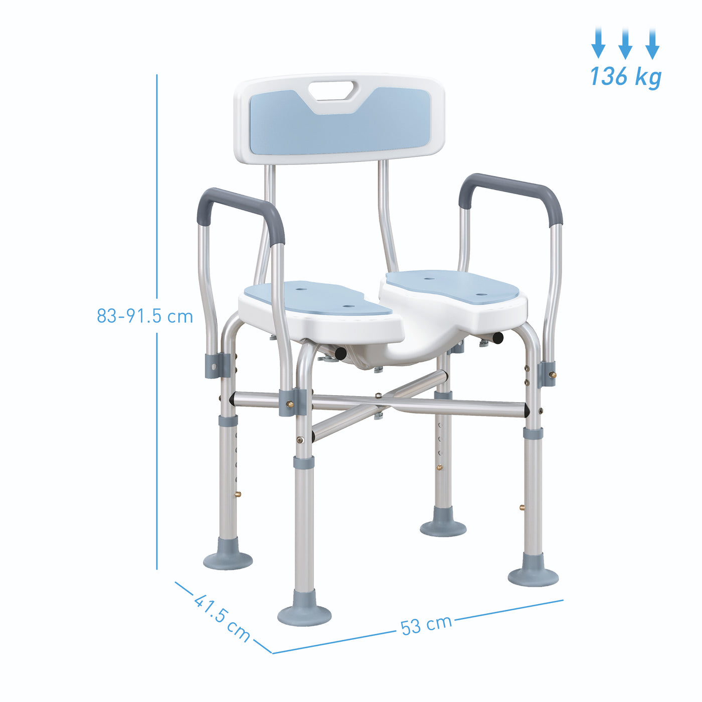 This HOMCOM shower chair is a safe and comfortable piece, made for those who require showertime assistance, such as the elderly, disabled and injured. It includes a deep central slot for easy and effective cleaning access and paddings on the seat and back for added comfort. Five-level seat heights also provide different options for users of different heights. Experience safe, comfortable and effortless bathing with the HOMCOM bathing chair.