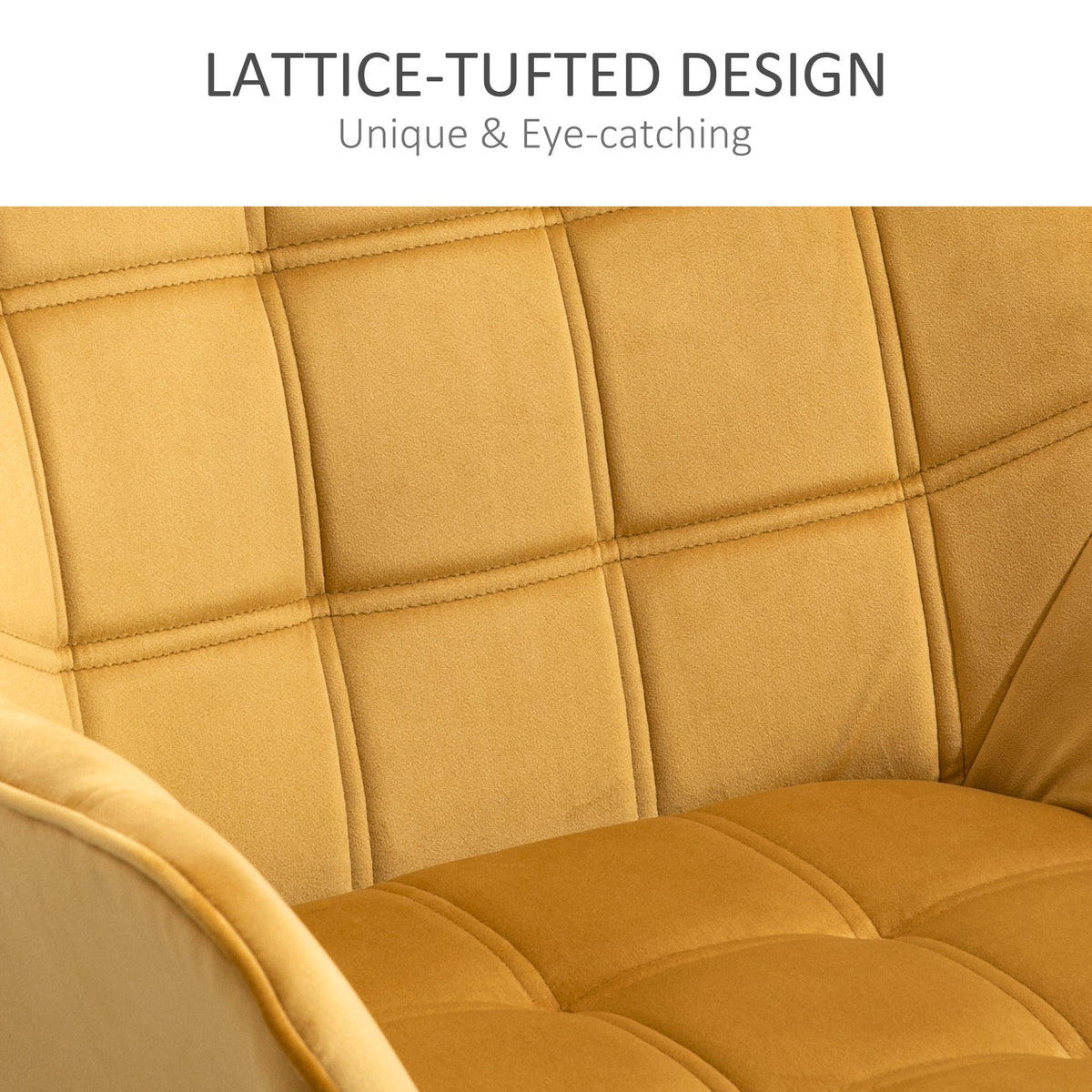 HOMCOM Armchair Accent Chair, Vanity Chair with Wide Arms, Slanted Back, Padding, Metal Frame, Wooden Legs, Home Bedroom Furniture Seating, Set of 2, Yellow - Yellow
