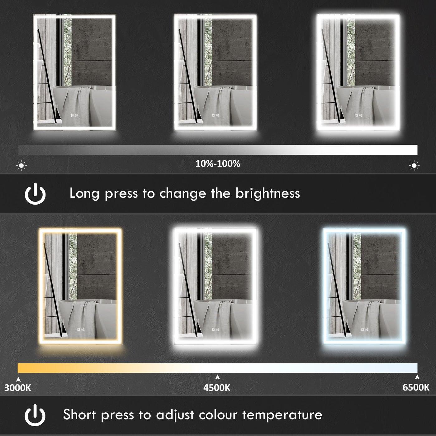 HOMCOM Bathroom Mirror Cabinet with LED Lights and Shaver Socket, 500 x 700 mm Wall Mounted Bathroom Cabinet with Mirror, Demister Pad, Dimmer, 3 Colours, Medicine Cabinet, Black - Black