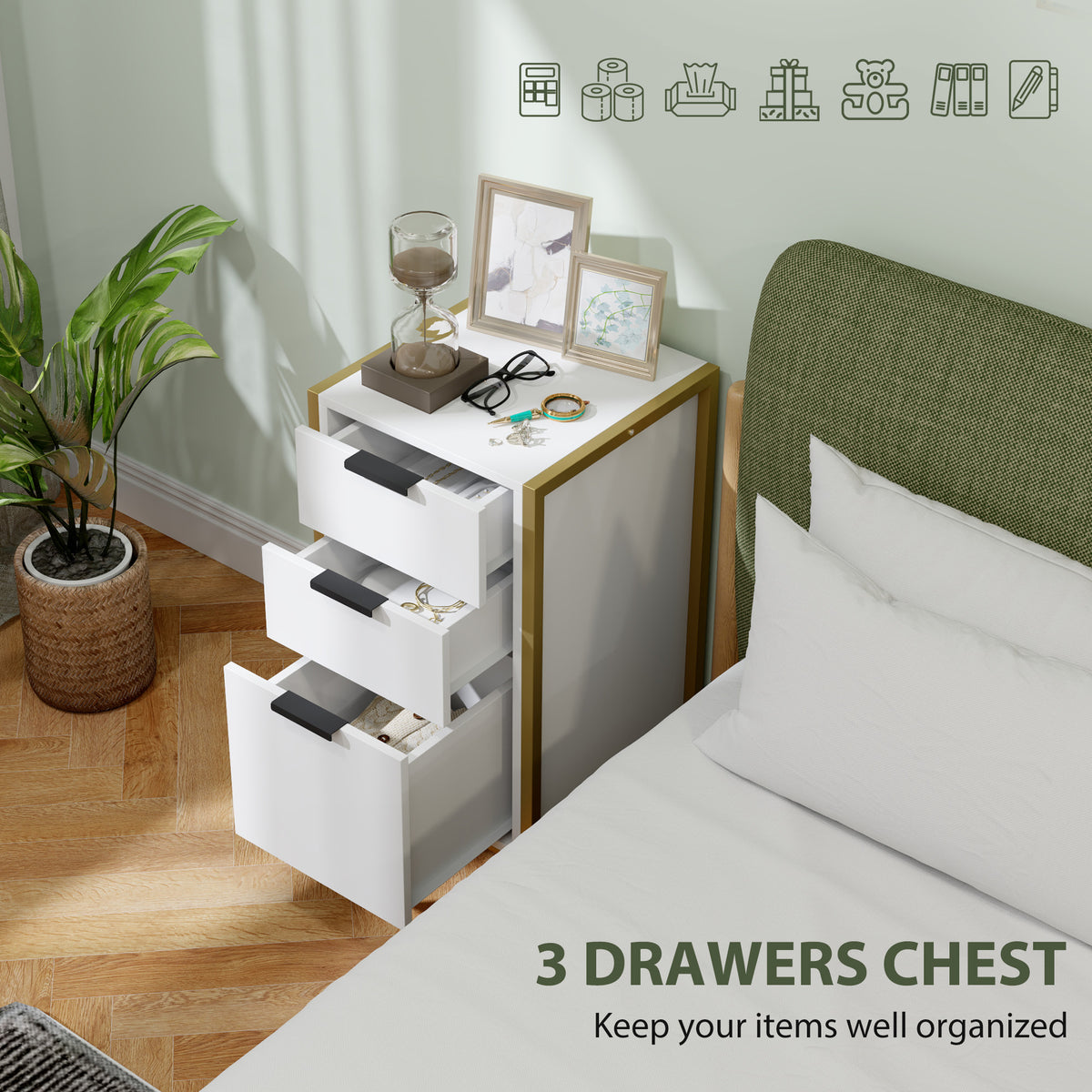 HOMCOM Bedroom Chest of Drawers, Industrial 3-Drawer Dresser, Storage Drawers Unit with Metal Frame for Living Room, White - White