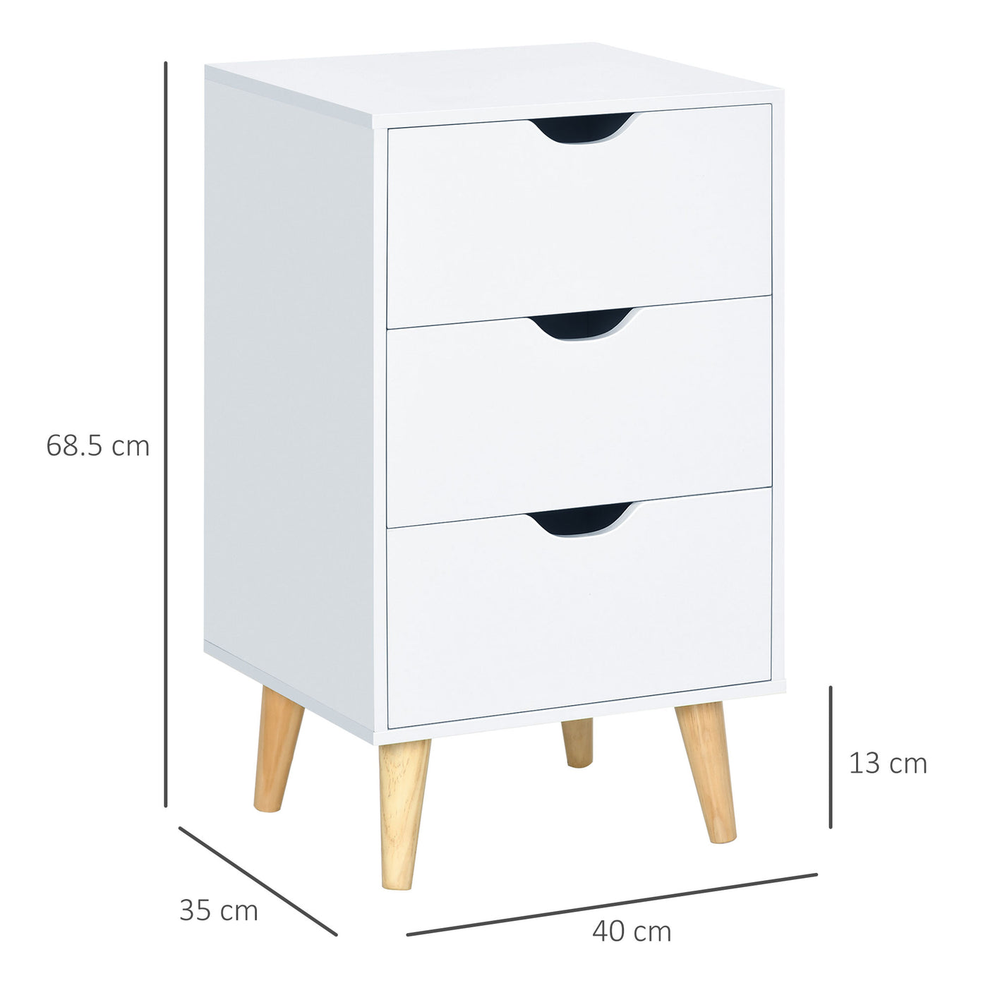 HOMCOM Bedside Table, Bedside Cabinet with 3 Drawers, Small Side Table with Wood Legs and Cut-out Handles for Bedroom, Cream White - Cream