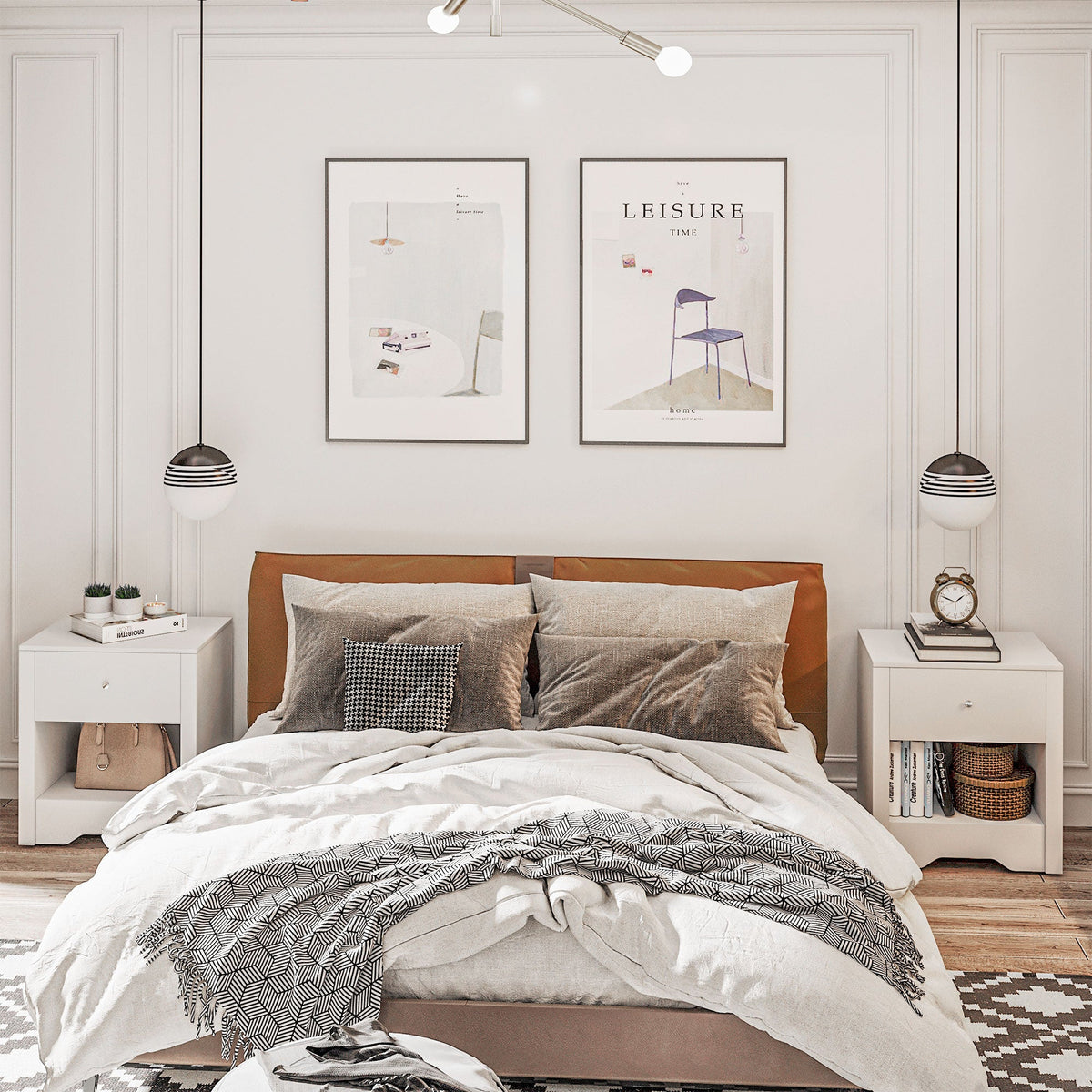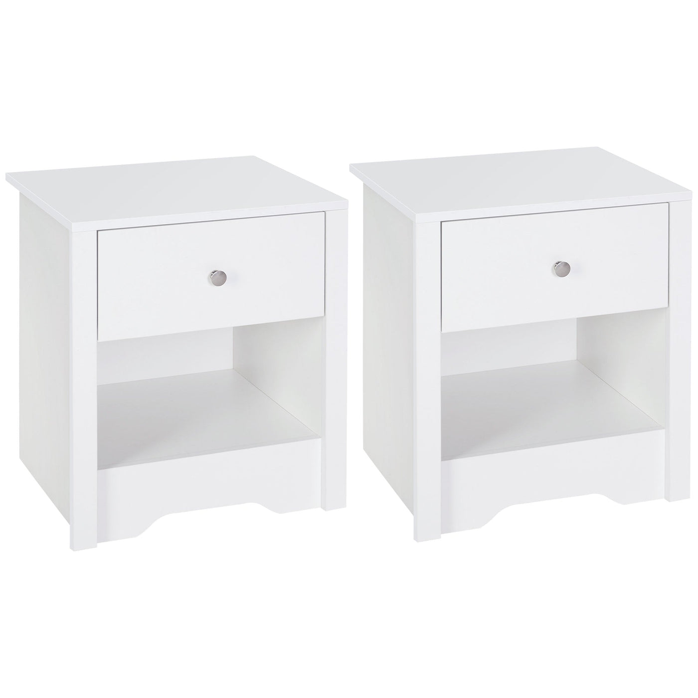 HOMCOM Bedside Table, Nightstand with Drawer and Open Shelf, End Table for Living room, Bedroom, Set of 2, White - White