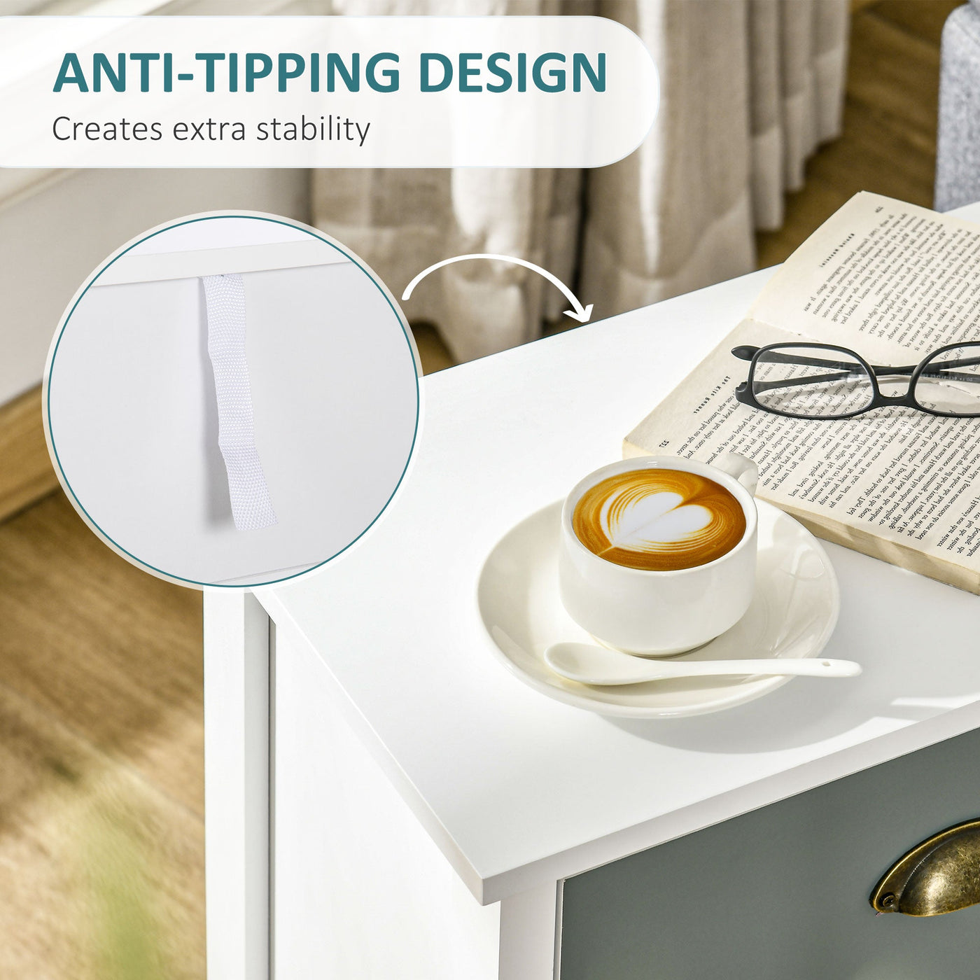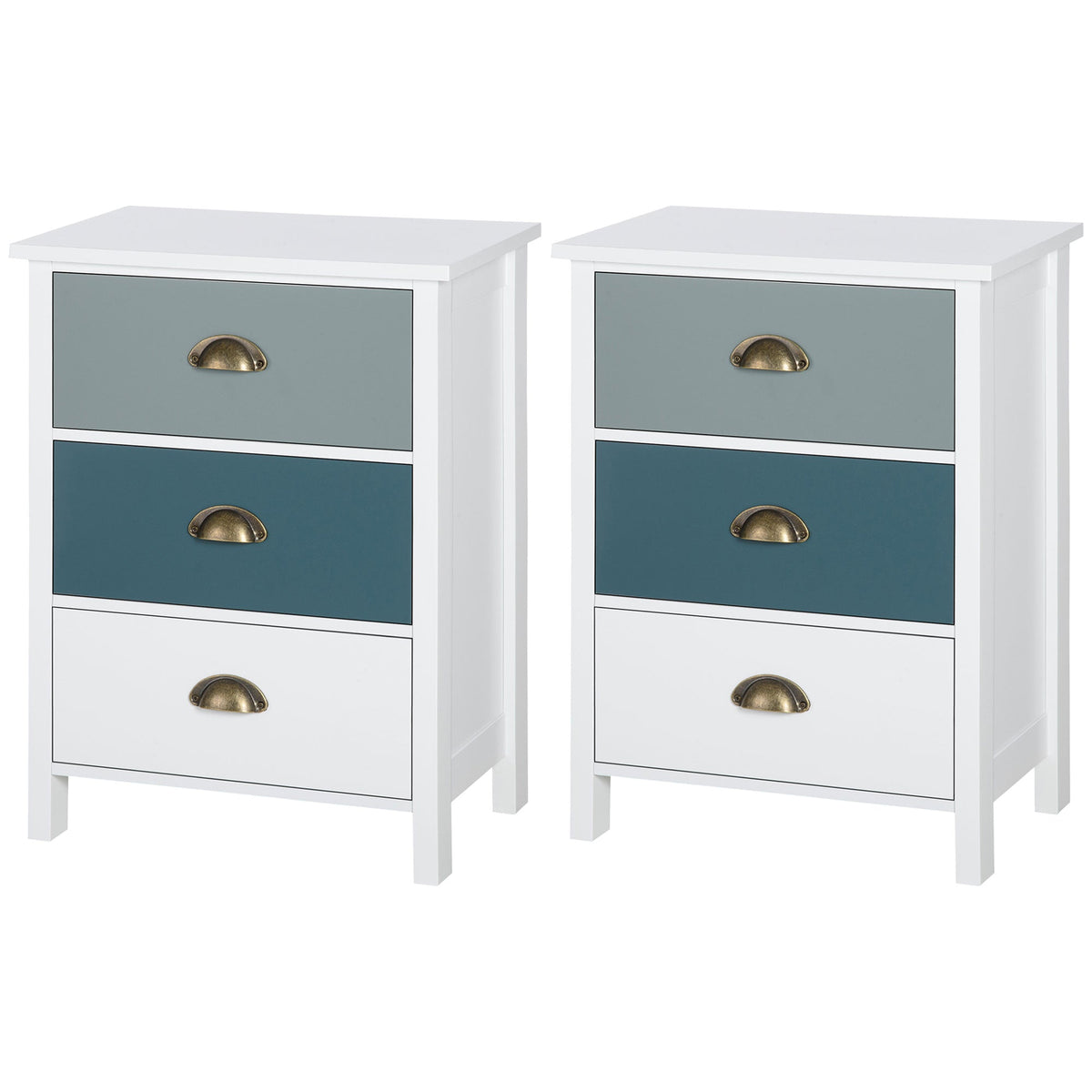 HOMCOM Bedside Table Set of 2 Chest of 3 Drawers Shabby Chic Nightstands with Metal Handle Sofa Side Table for Living Room, Bedroom,Grey and blue - Multi Colour