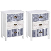 HOMCOM Bedside Table Set of 2 Chest of 3 Drawers Shabby Chic Nightstands with Metal Handle Sofa Side Table for Living Room, Bedroom,Purple - Multi Colour