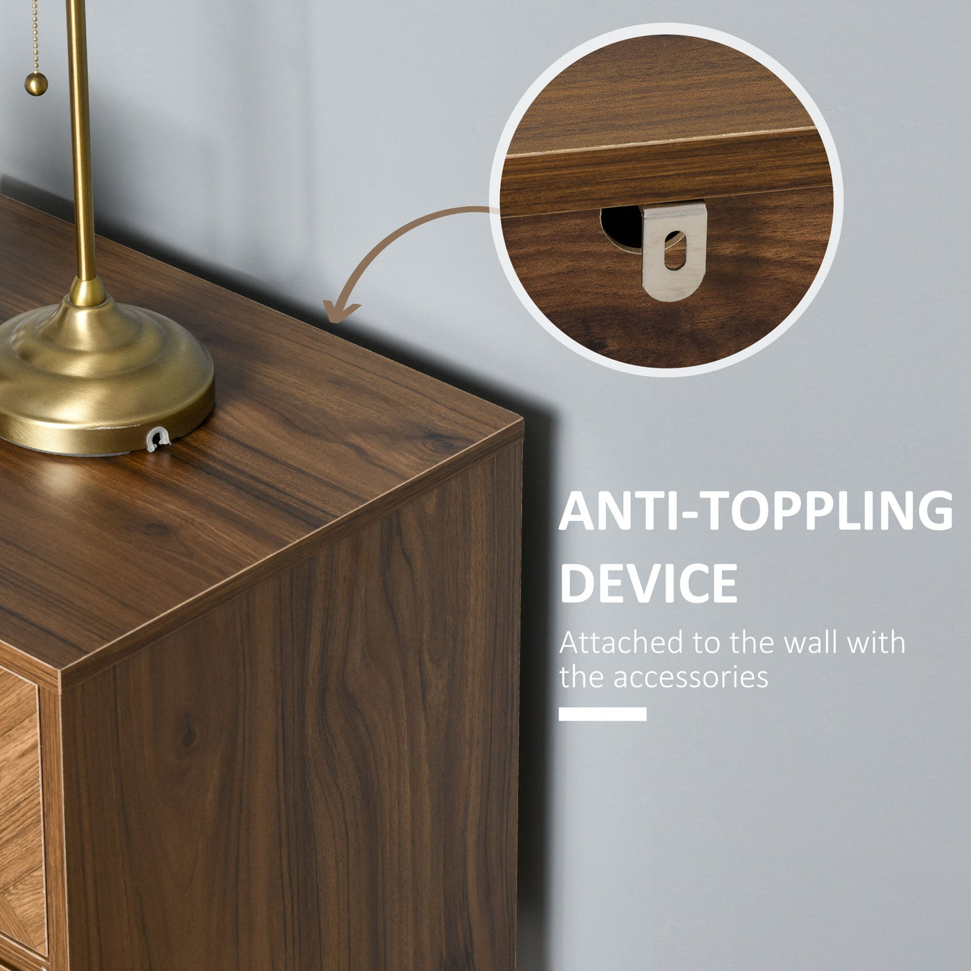 Add a touch elegance to your everyday with our HOMCOM bedside tables. In walnut brown, with herringbone pattern, it's fitted with metal drawer handles and legs - looks beautiful. The two drawers provide plenty of room for keeping night essentials close to you. Complete with metal legs for strong support.