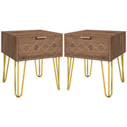 HOMCOM Bedside Table Set of 2 with Drawer, Wooden Nightstand, Modern Sofa Side Table with Gold Tone Metal Legs for Bedroom - Brown