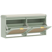 Step into a serene entryway with the HOMCOM shoe storage bench. Tired of clutter? The flip doors and double shelf design offer effortless organization, keeping your shoes neatly arranged. Imagine the comfort of a thick cushion as you change shoes, with a breathable linen-feel fabric surface ensuring cleanliness. The rattan doors add a boho touch, enhancing your home's inviting atmosphere.