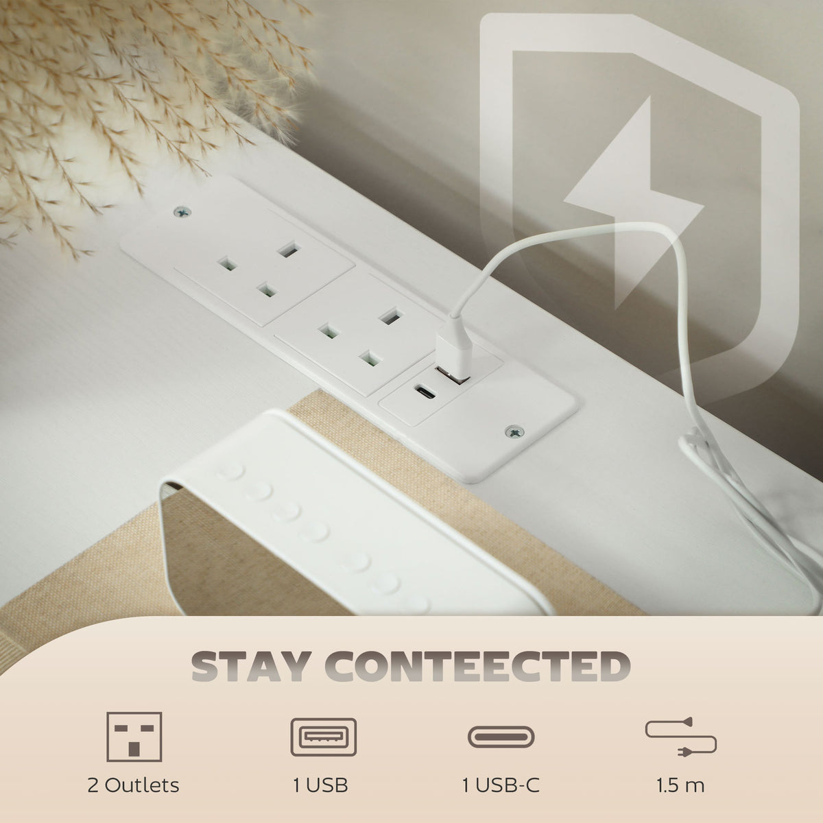 HOMCOM Boucle Chest of Drawers, 8 Fabric Drawers Storage Organiser with Charging Station, 2 USB and 2 AC Ports, Steel Frame, Fabric Dresser for Living Room, Bedroom, Hallway, Cream White