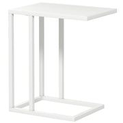 HOMCOM C Shape Bedside Table w/Metal Frame Wood-Effect Top Sofa Narrow Snack End Table for Living Room, White - White