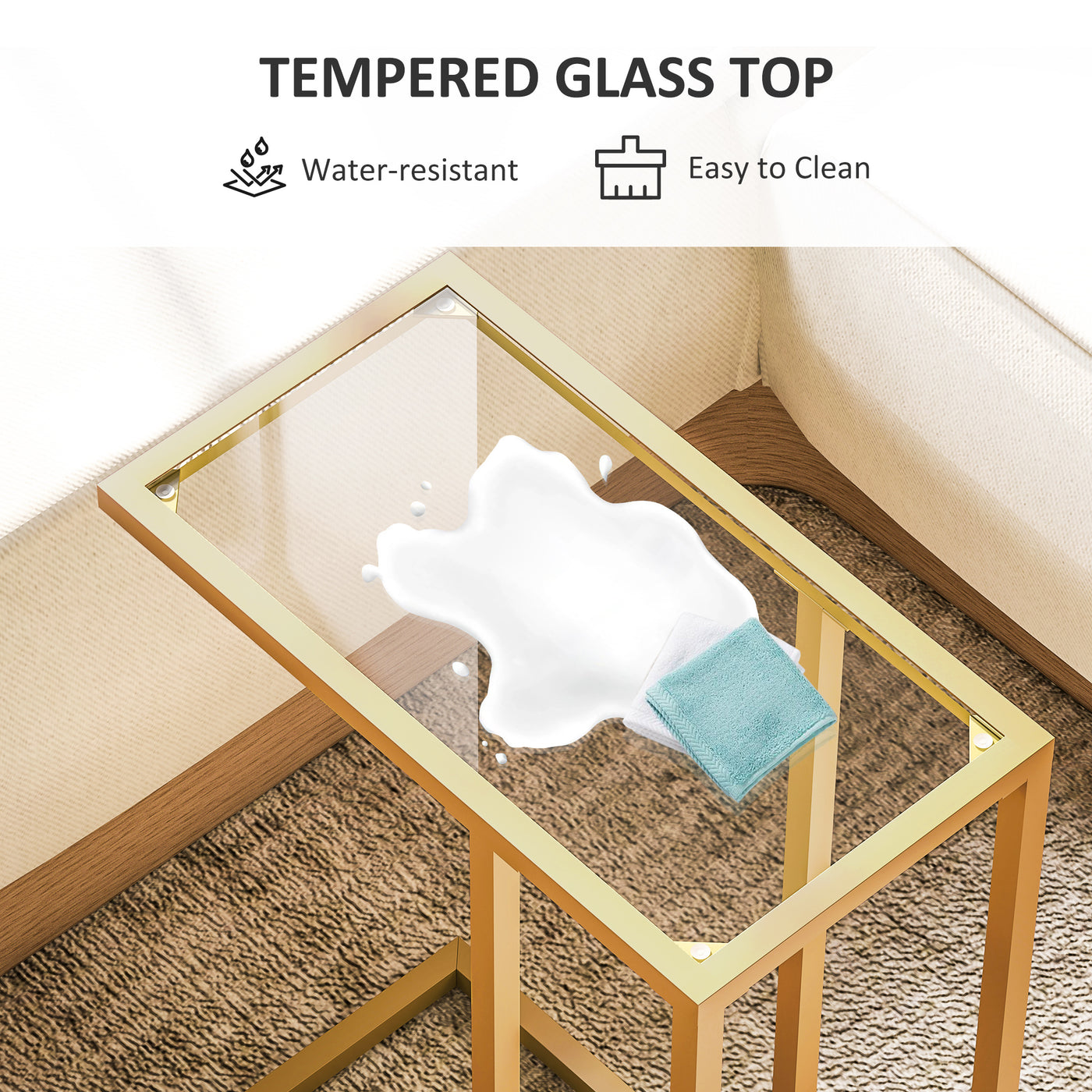 HOMCOM C-Shaped Side Table, Modern Slim End Table with Tempered Glass Tabletop, Steel Frame for Small Space, Living Room, Bedroom, Gold Tone - Gold Tone