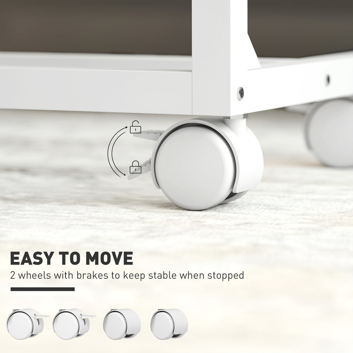 The HOMCOM adjustable table morphs to your rhythm—a sofa-side perch for coffee, a tilted workstation over your bed, or a stable surface for recovery care. Effortlessly adjust the height from 62.5-82.5cm and tilt the desktop up to 60° to meet your comfort needs. Roll effortlessly between rooms on locking casters that secure stability during use, maintaining flow from morning coffee to evening projects.