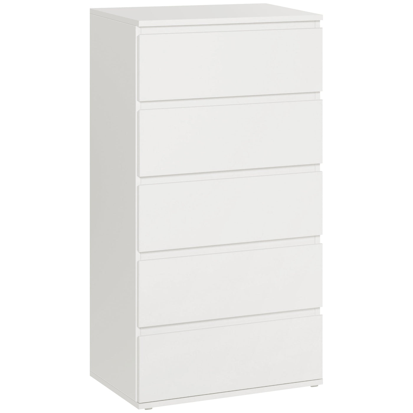 HOMCOM Chest of Drawers, 5 Drawers Storage Cabinet Floor Tower Cupboard for Bedroom Living Room, White - White
