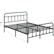 HOMCOM Double Bed Frame with LED Lights and Charging Station, Metal Platform Bed Frame with Under Bed Storage, Black - Black