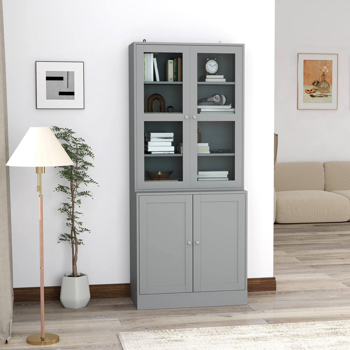 Create a tidy and presentable home with ease - do it with this HOMCOM display cabinet. It's formed of a top cabinet and bottom cupboard for plenty of storage; the upper is fitted with tempered glass doors so you can see through and display your favourite items beautifully. Also inside the top cabinet, there are two adjustable shelves to store items at the position you want. Made from MDF, this unit is stable-great for the everyday, it's finished with safe anti-tipping straps.