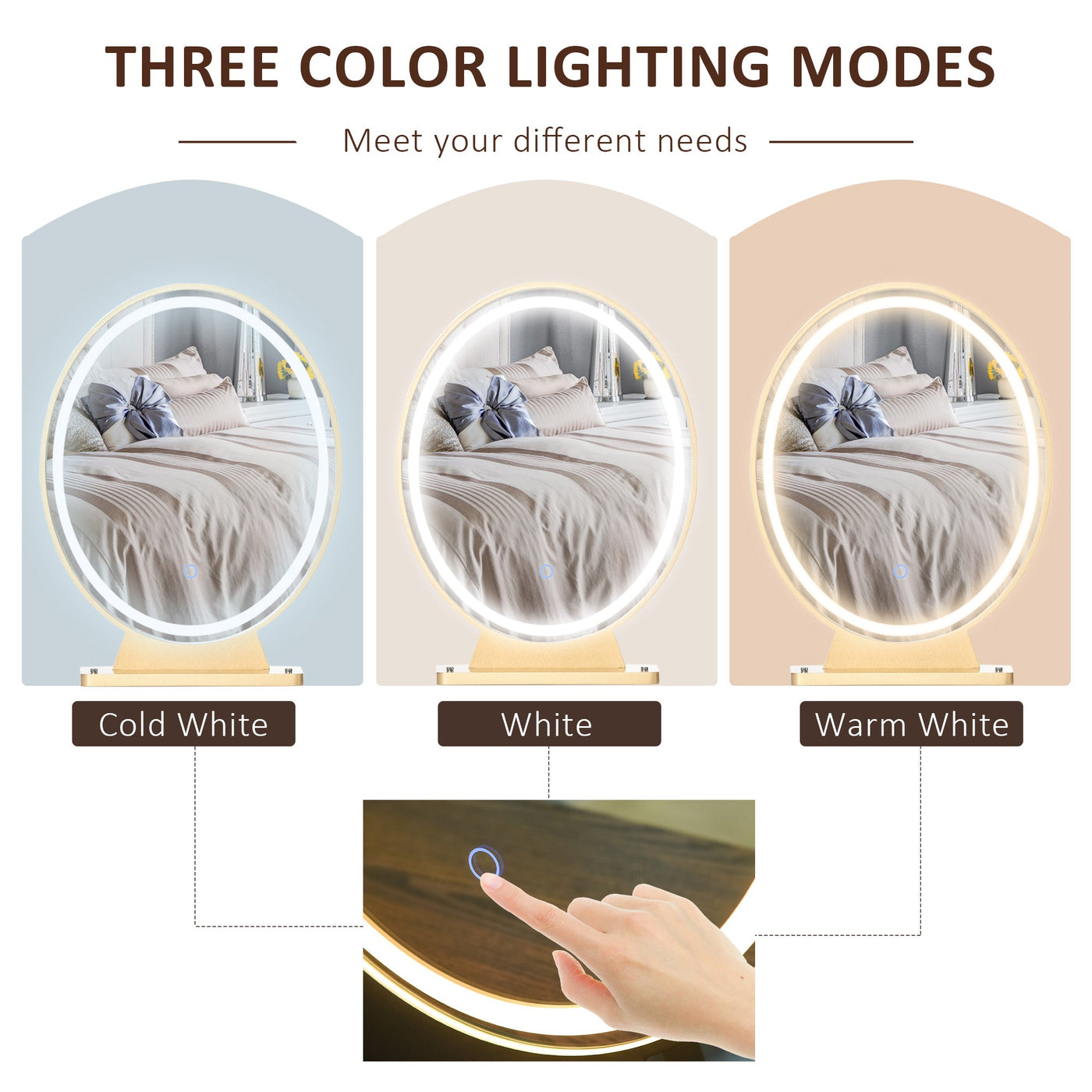 HOMCOM Dressing Table Set with LED Light, Round Mirror, Vanity Makeup Table with 2 Drawers and Cushioned Stool for Bedroom, White - White