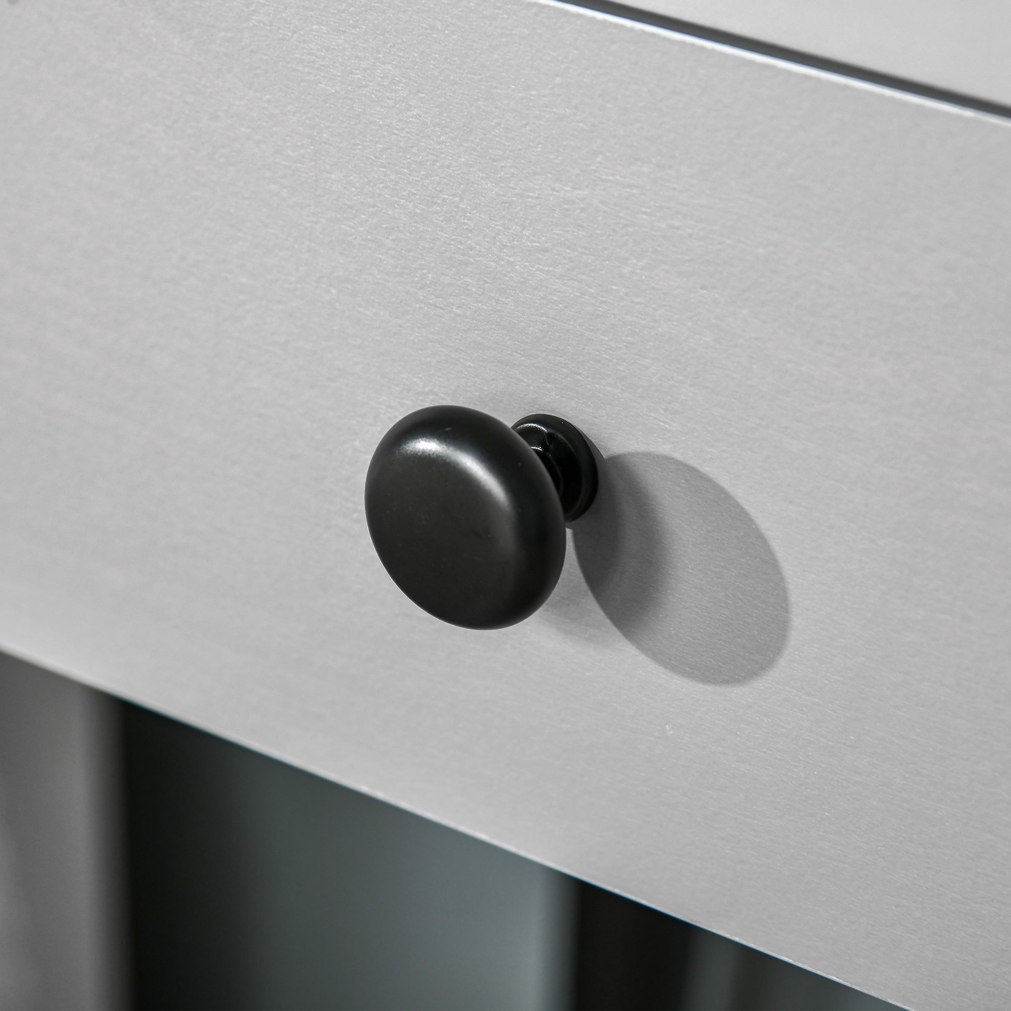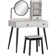 HOMCOM Dressing Table Set with Mirror and Stool, Vanity Makeup Table with 3 Drawers and Open Shelves for Bedroom, Living Room, Grey - Gray