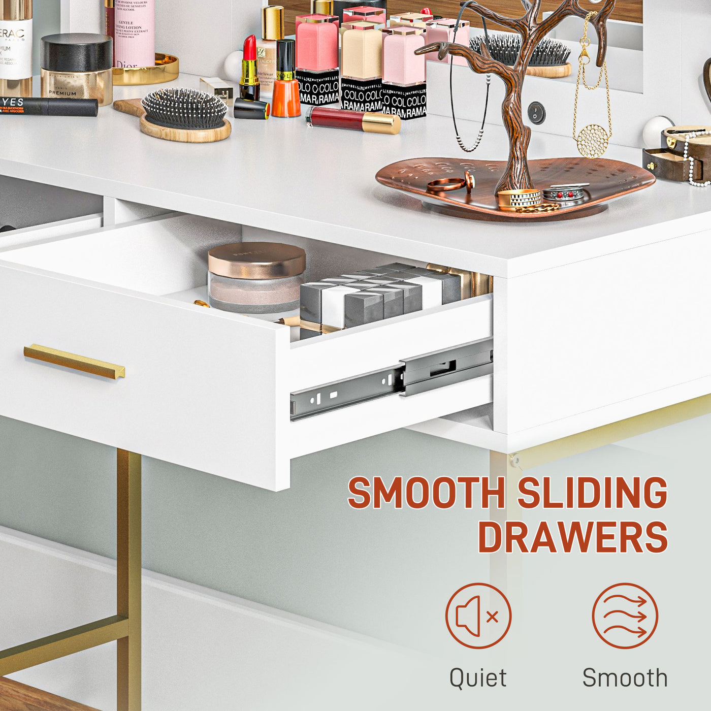 HOMCOM Dressing Table with Lighted Mirror, Cushioned Stool, Drawers, Shelves, LED Makeup Vanity Desk Set, Modern Dresser Vanity Table for Bedroom, White - White