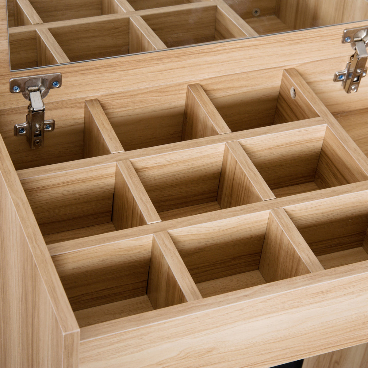 HOMCOM Dressing Table with Mirror and Stool, Vanity Makeup Table with Flip Up Mirror, Vanity Desk with Storage Unit and Padded Seat, Wood - Wood Grain Colour
