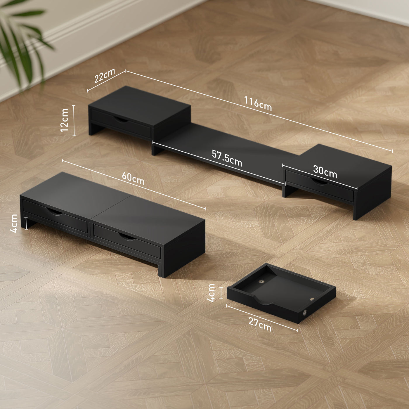 HOMCOM Dual Monitor Stand Riser with 2 Drawers, Adjustable Length and Angle, 116cm Monitor Riser for Laptop, Computer, PC, Small Printer, Black - Black