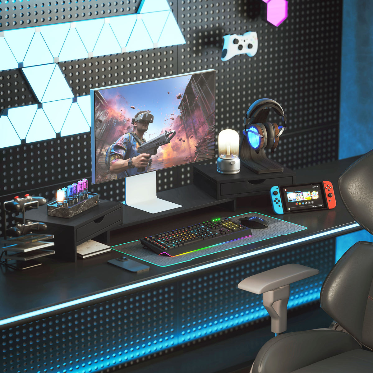 Elevate your viewing with the HOMCOM monitor stand with drawer, designed to lift your monitor to eye level for optimum comfort. This nifty monitor riser stand extends from 60-116cm to accommodate the placement of two monitors and adjusts angles to your liking, maximizing desk space with cleverly integrated drawers and storage compartments for keyboards and mice. Suitable for screens up to 24", it's a space-saver that tidies while it elevates!