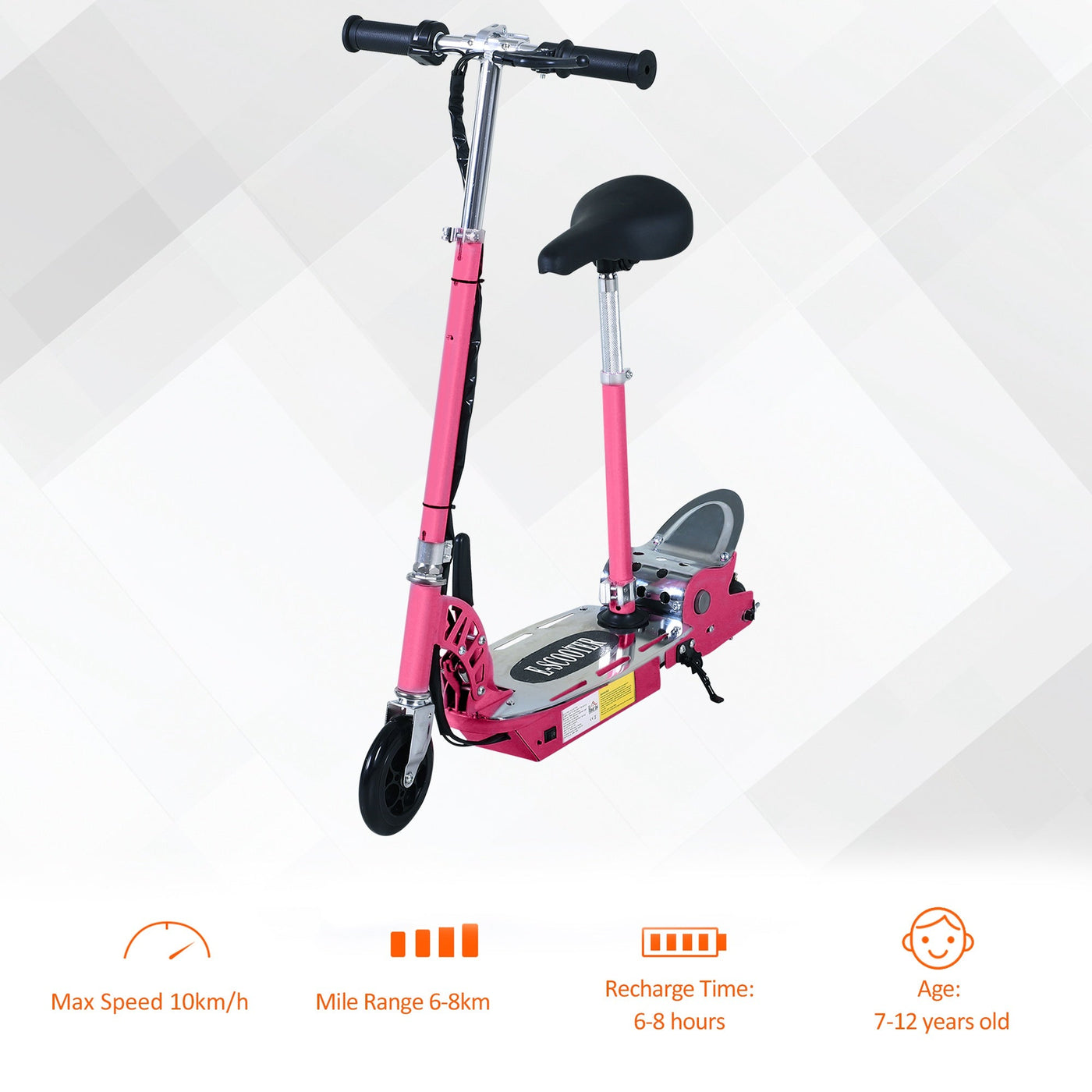 HOMCOM Electric Scooter for Kids, Foldable Powered Scooters for Age 7-12 with 120W Motor, Up to 10 KM/H & 8 KM, Adjustable Ride on Toy (Pink)