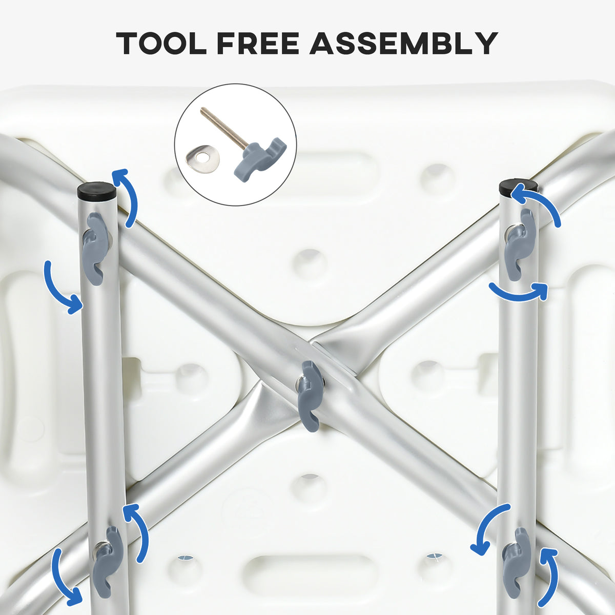 HOMCOM EVA Padded Shower Chair for the Elderly and Disabled, Height Adjustable Shower Stool with Back and Arms, 4 Suction Foot Pads, Light Blue - Light Blue