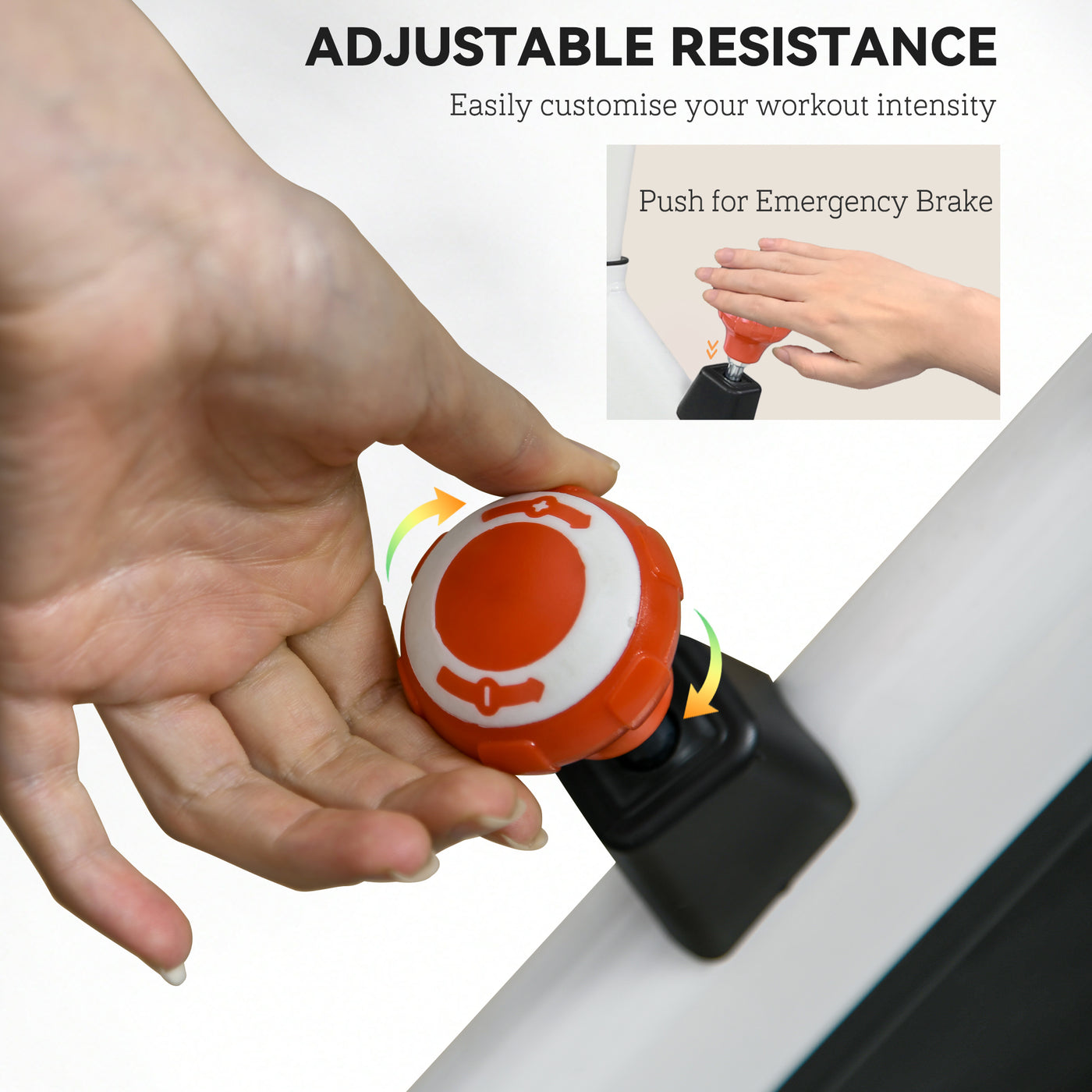 Take you to a new fitness level with this stationary bike from HOMCOM. It comes with a seven-position moving seat and handlebars, so it's easy to find a slot for you. The fitness bike's seat is padded for comfort and the pedals feature toe caps to hold your feet as you work out. The resistance is adjustable with the tension knob, with the 8kg flywheel ensuring it ridings smoothly and stably. This static bike is finished with a monitor to track your fitness as you move.