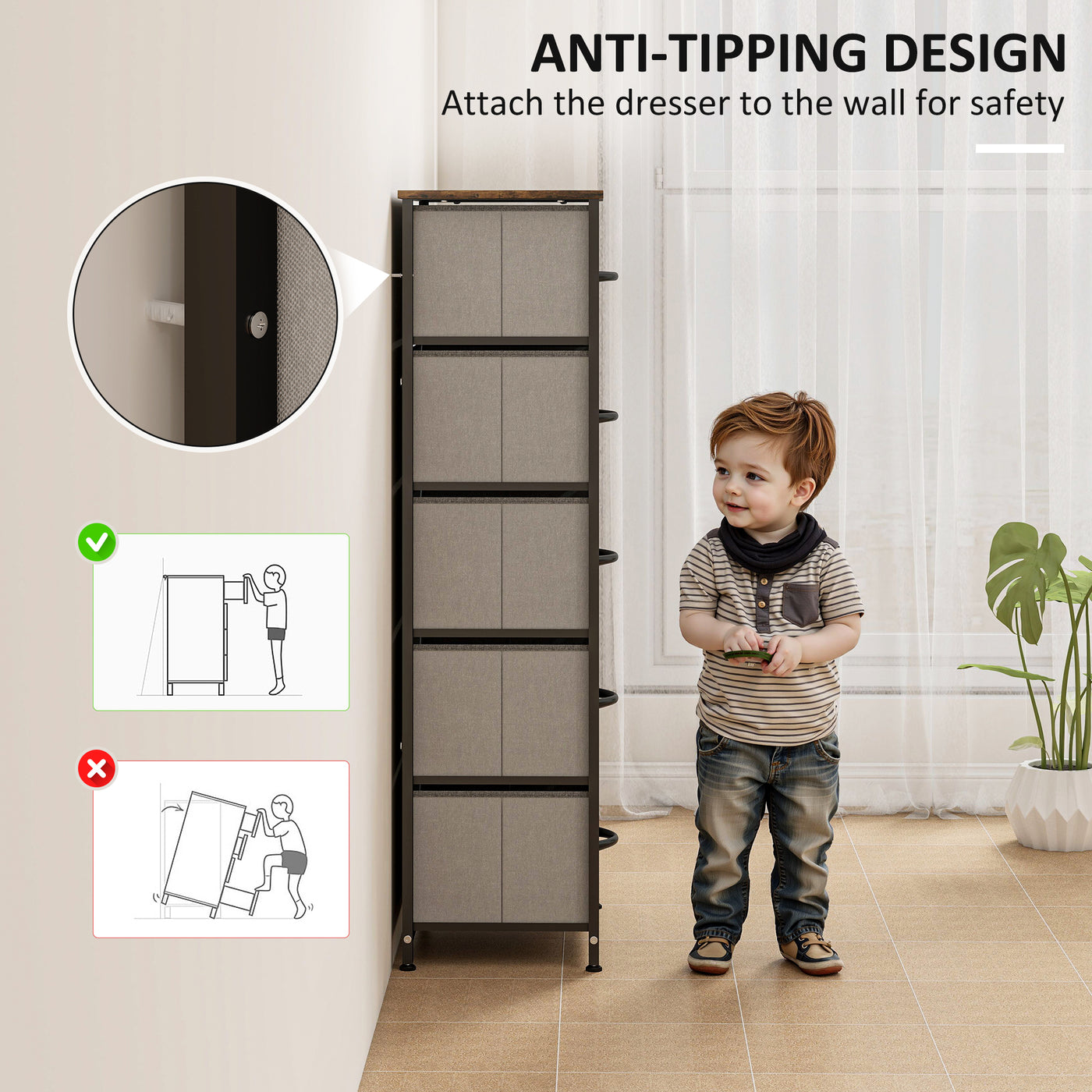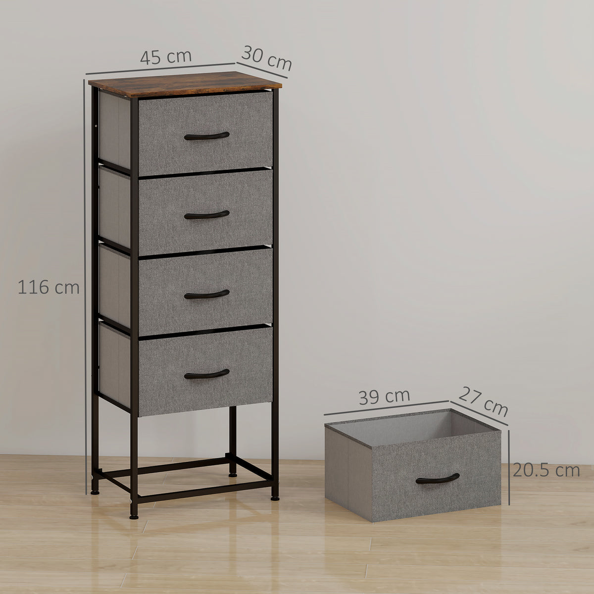 HOMCOM Fabric Chest of Drawers, Industrial Bedroom Dresser with 5 Fabric Drawers, Steel Frame and Wooden Top for Nursery, Living Room, Hallway, Rustic Brown and Grey - Rustic Brown