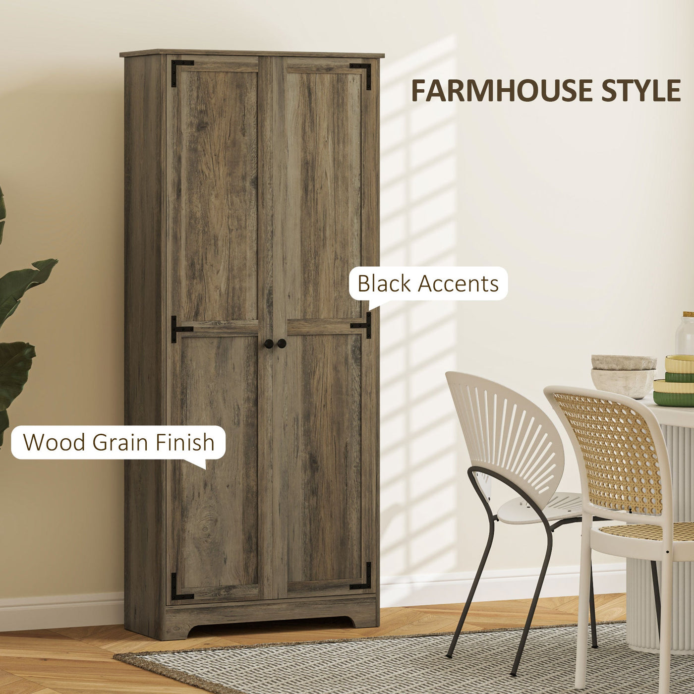 HOMCOM Farmhouse Kitchen Cupboard, Freestanding Kitchen Storage Cabinet with Adjustable Shelves, Tall Storage Cabinet with Recessed Doors, Grey Wood-Effect - Grey