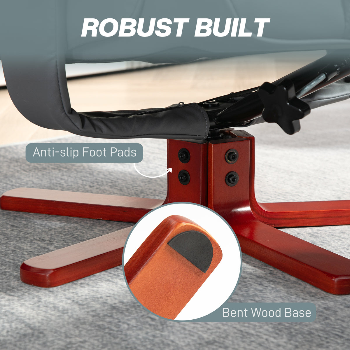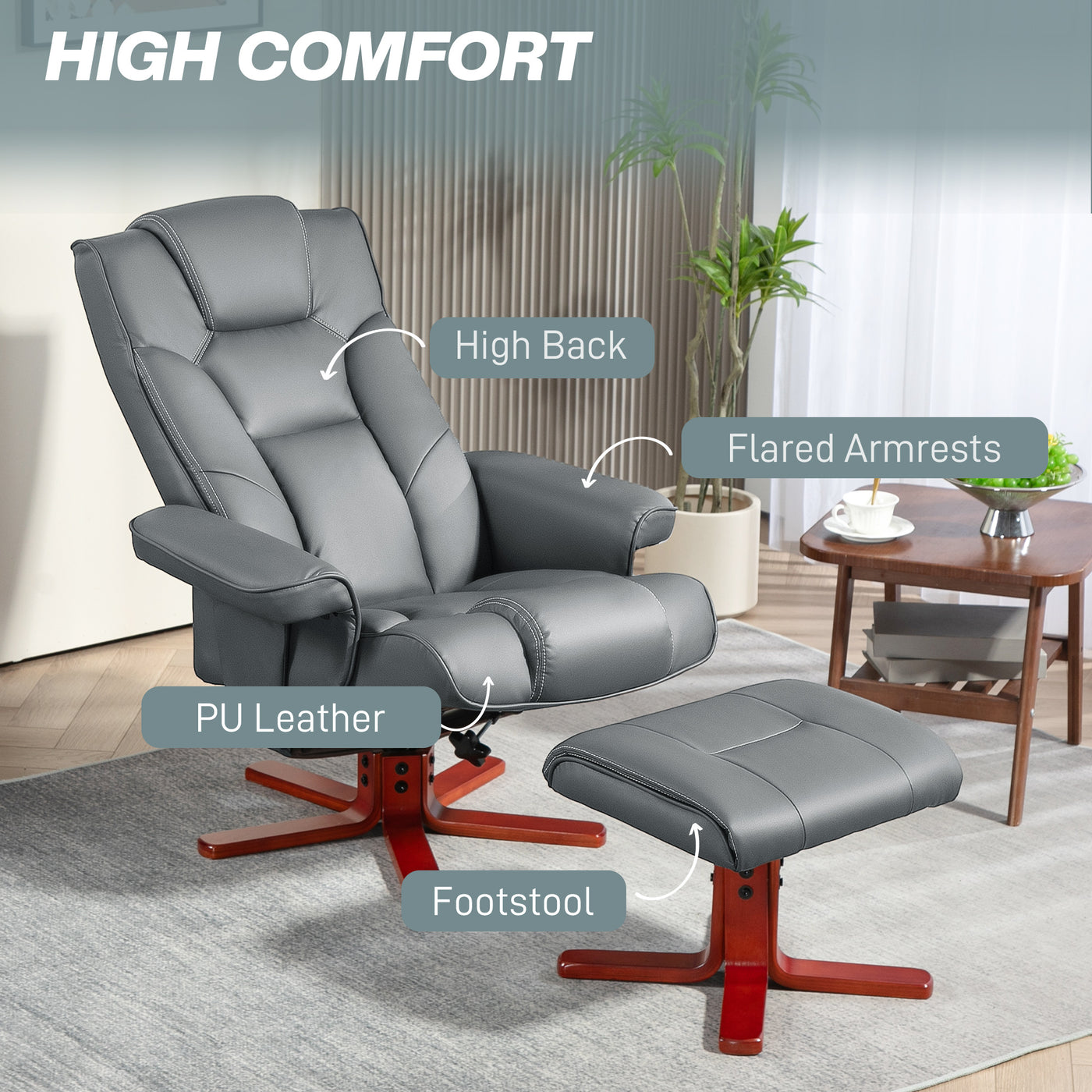 HOMCOM Faux Leather Manual Recliner and Footstool Set - Grey