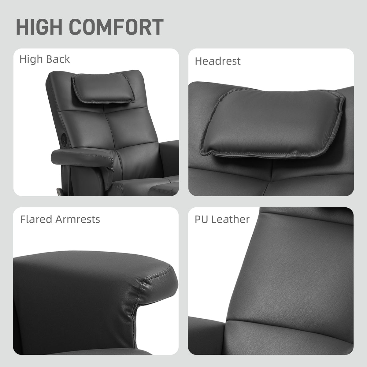 Discover relaxation with the HOMCOM massage armchair and footstool. This leather armchair features a backrest that locks between 100 and 135 degrees and six vibration massage points for blissful comfort. The matching footstool offers hidden storage, making this duo the epitome of relaxation in any lounge space.