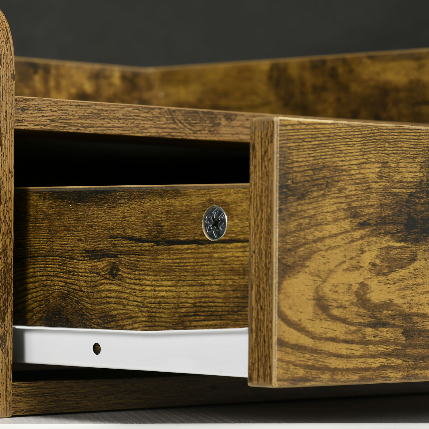 HOMCOM Floating Nightstand Set of 2 Wall Mounted Bedside Table with Storage Drawer for Bedroom, Rustic Brown - Rustic Brown