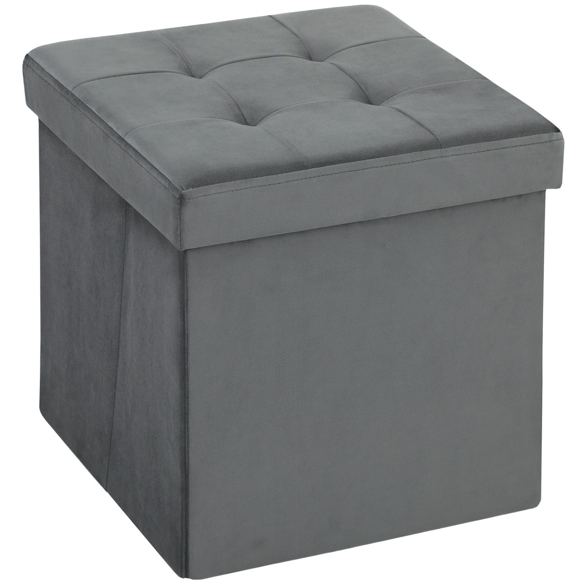 HOMCOM Foldable Velvet-Feel Storage Ottoman - Grey - Grey