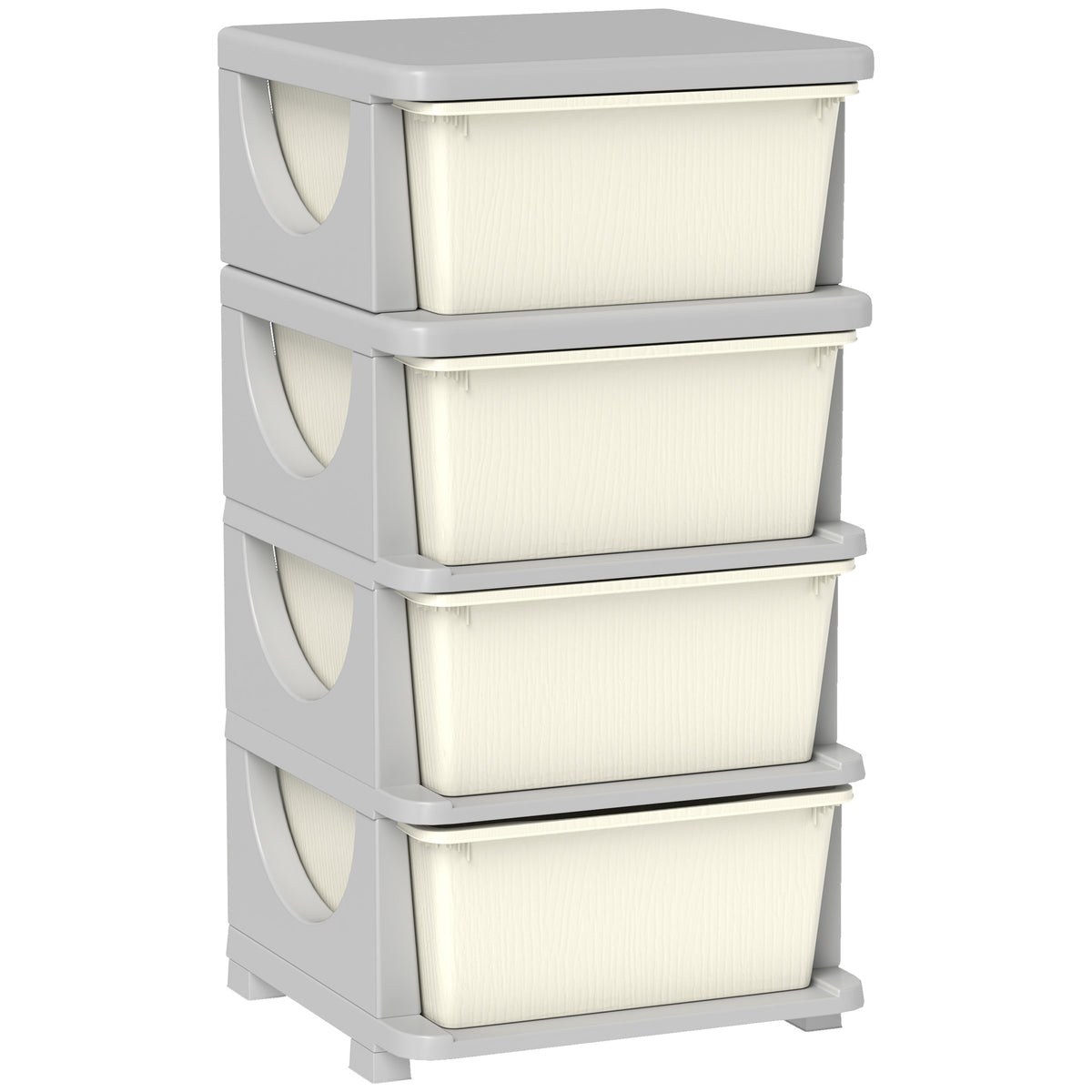 HOMCOM Four-Tier Kids Storage Boxes, with Four Drawers - White - Cream