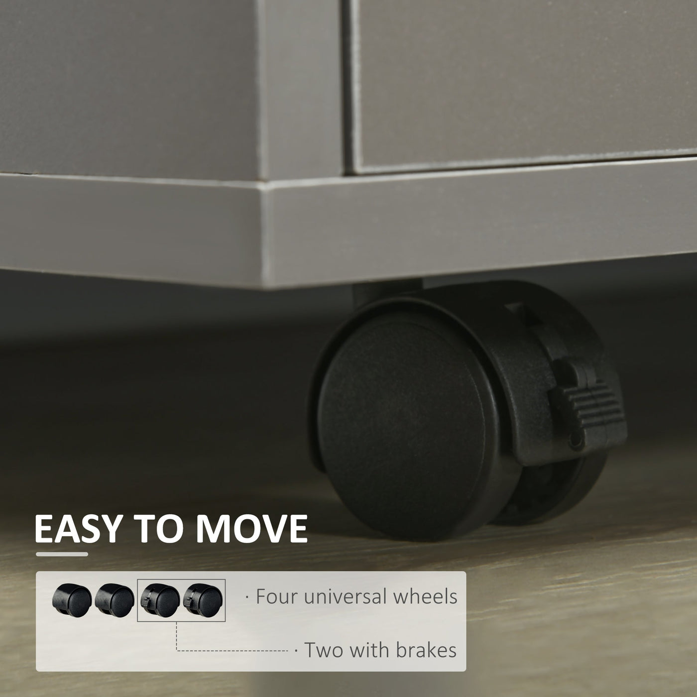 HOMCOM Freestanding Printer Stand Unit Office Desk Side Mobile Storage w/ Wheels 3 Drawers, 2 Open Shelves Modern Style 80L x 40W x 65H cm - Grey - Grey