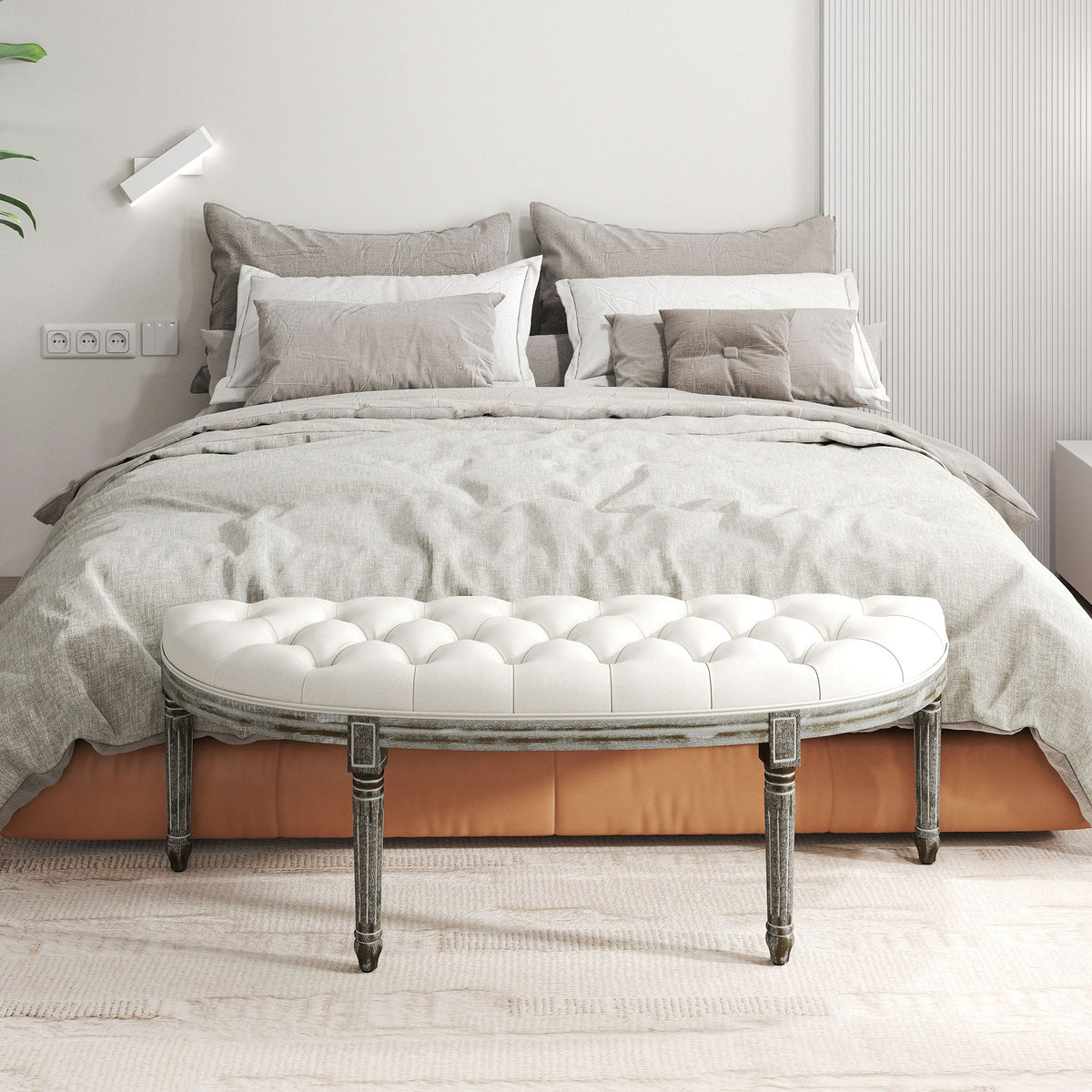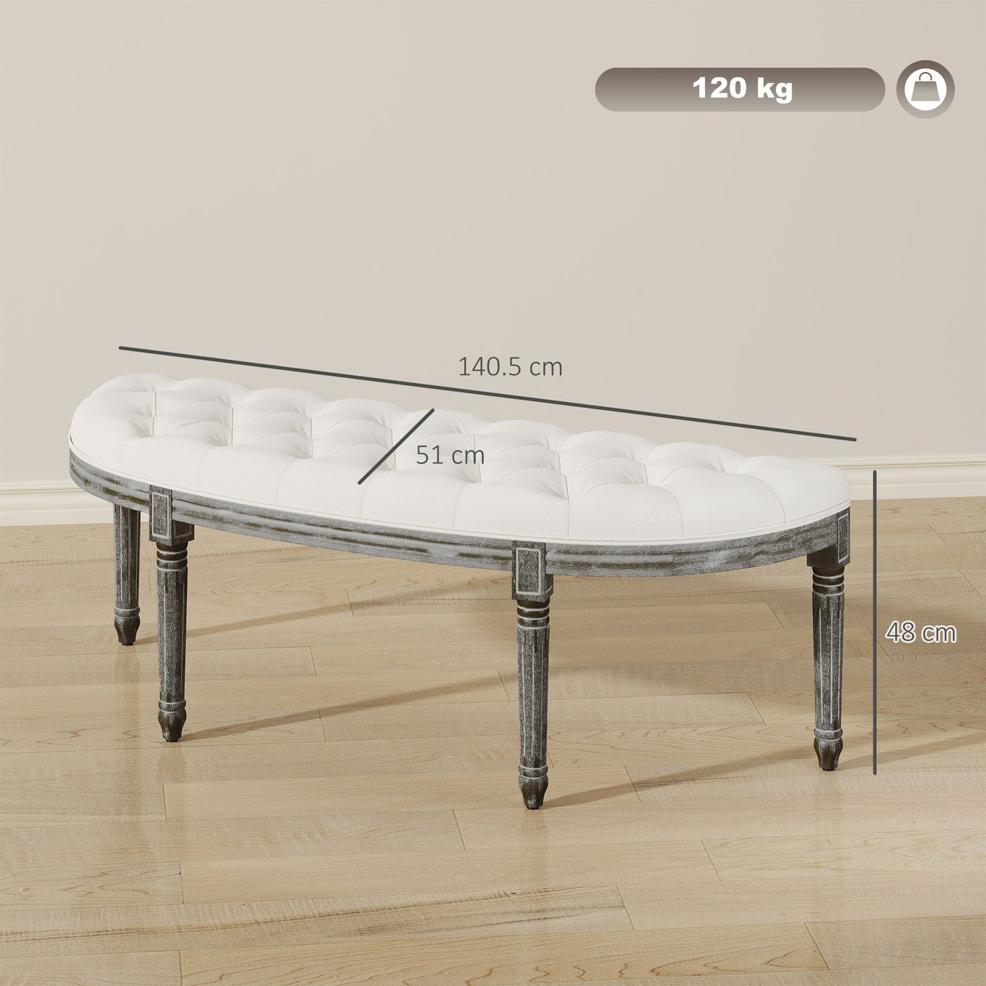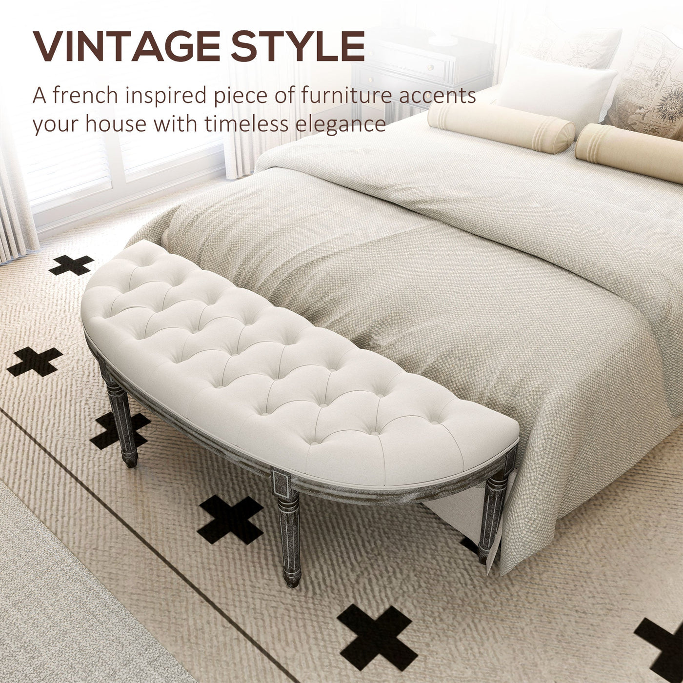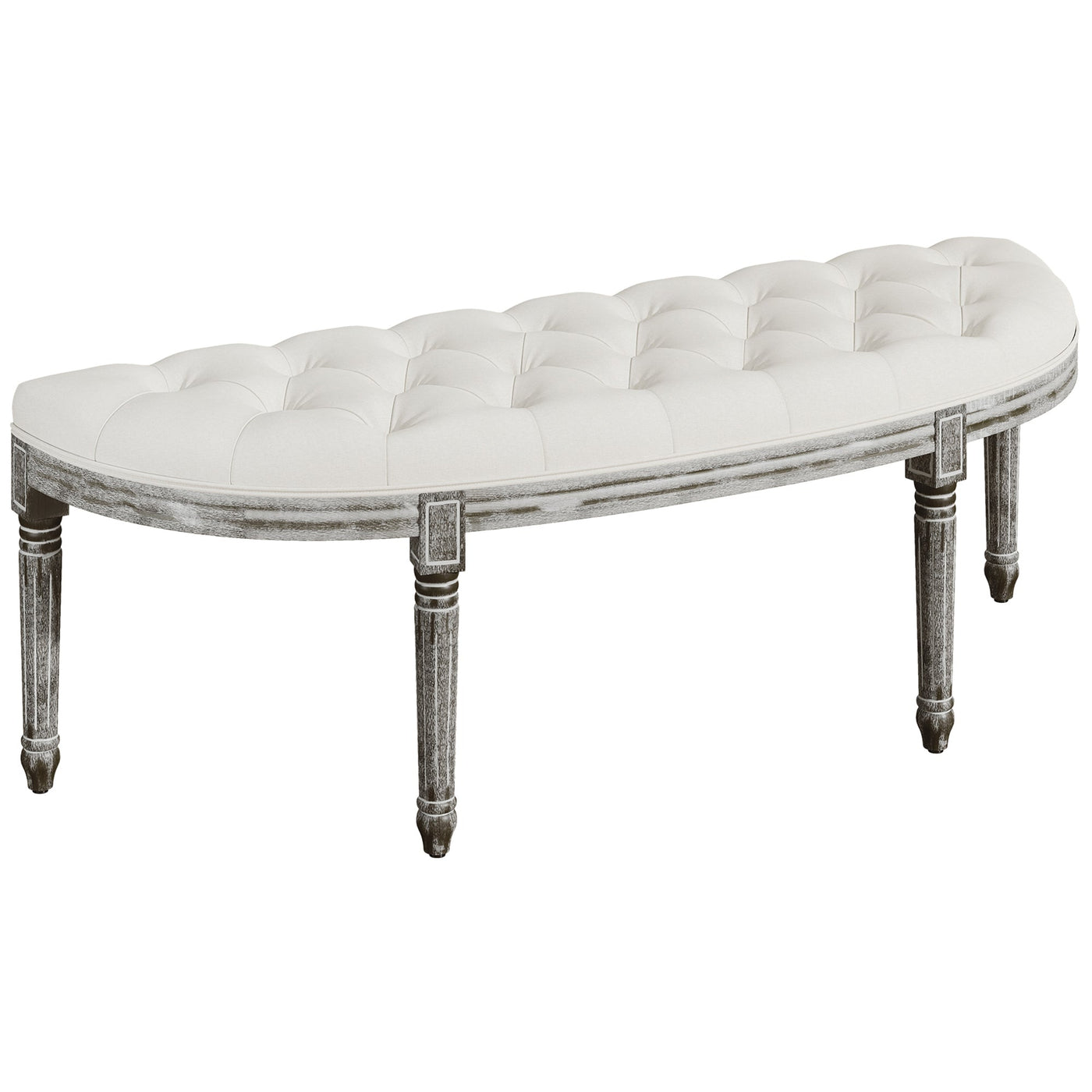 HOMCOM Half-Circle End Bench Ottoman Footstool Tufting Padded Seat Brushed Wood Base Antique Accents Home Seat Furniture Cream White and Light Wood Grain Leg