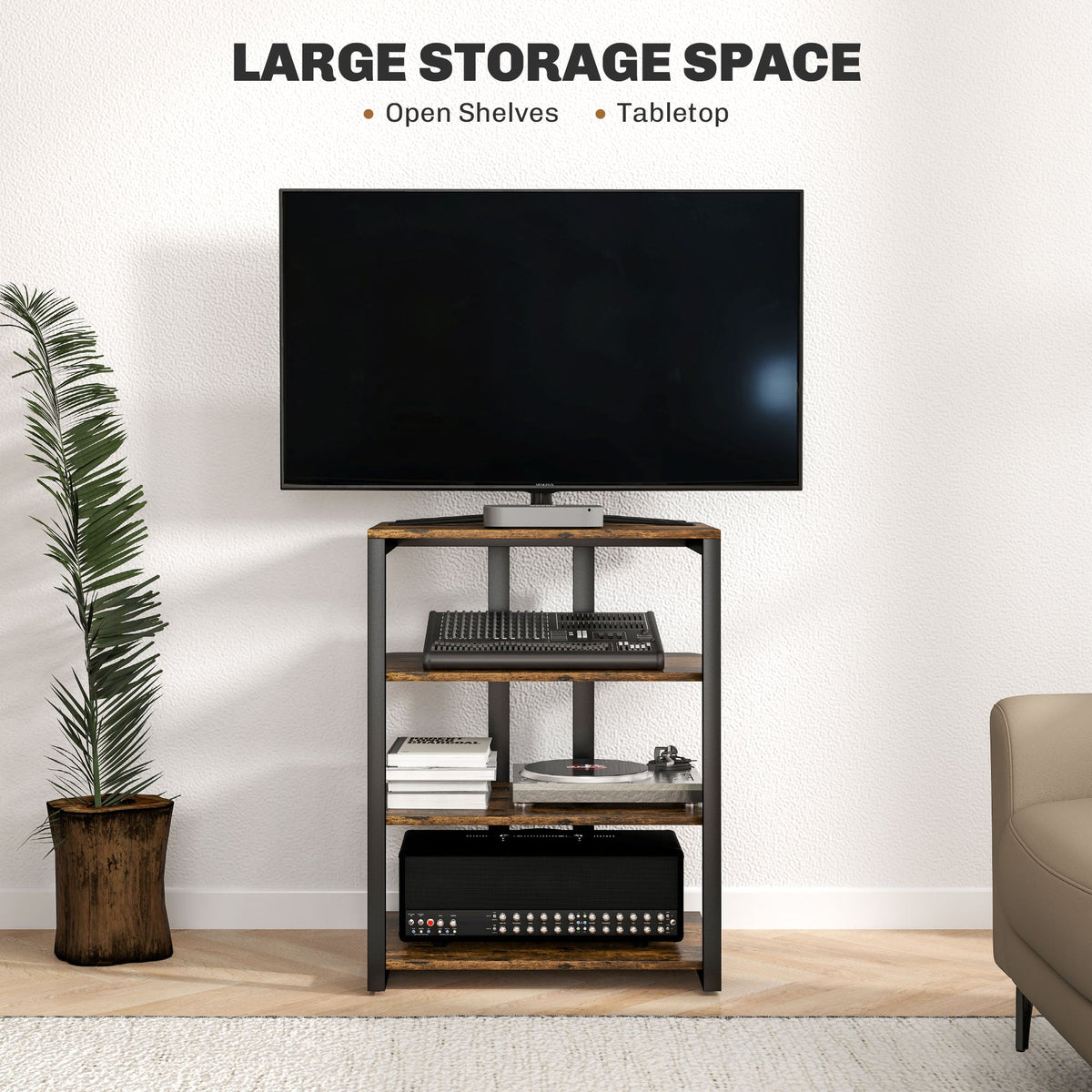 Simple style in a compact design - this HOMCOM HiFi stand. Four shelves offer enough room for keeping media equipment in a place; both the middle shelves are adjustable so you can set them to a suitable position. The steel frame of this router shelf ensures a strong core which will support properly, finished off with adjustable feet for balance and a handy power board rack.