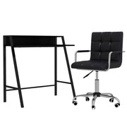 HOMCOM Home Office Chair and Computer Desk Set, Faux Leather Desk Chair with Swivel Wheels, Study Desk with Storage Shelf, Black - Black
