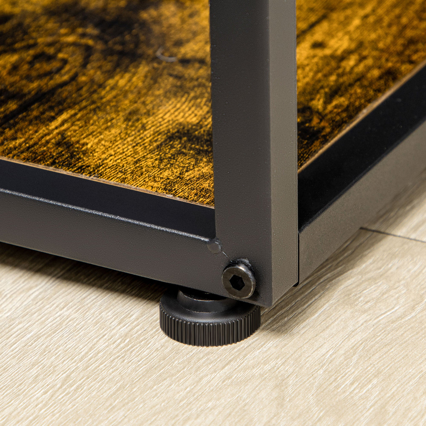 Cool industrial style comes in spacious form: this HOMCOM garage shelving. Say hello to the dark wood grain finish, paired with the black frame - a striking and characteristic design. Six shelves, some small and some large, offer plenty of space for decorations. A steel frame means a tough structure which supports all you have in place. Comes with anti-tipping straps to attach to wall.