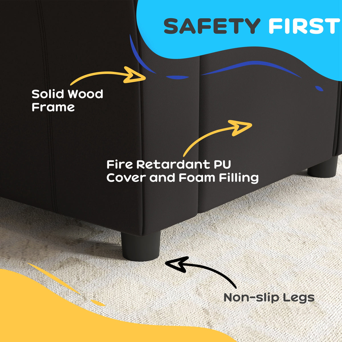 HOMCOM Kids Recliner Chair, PU Leather with Adjustable Backrest, Footrest, Padded Headrest, Black - Black
