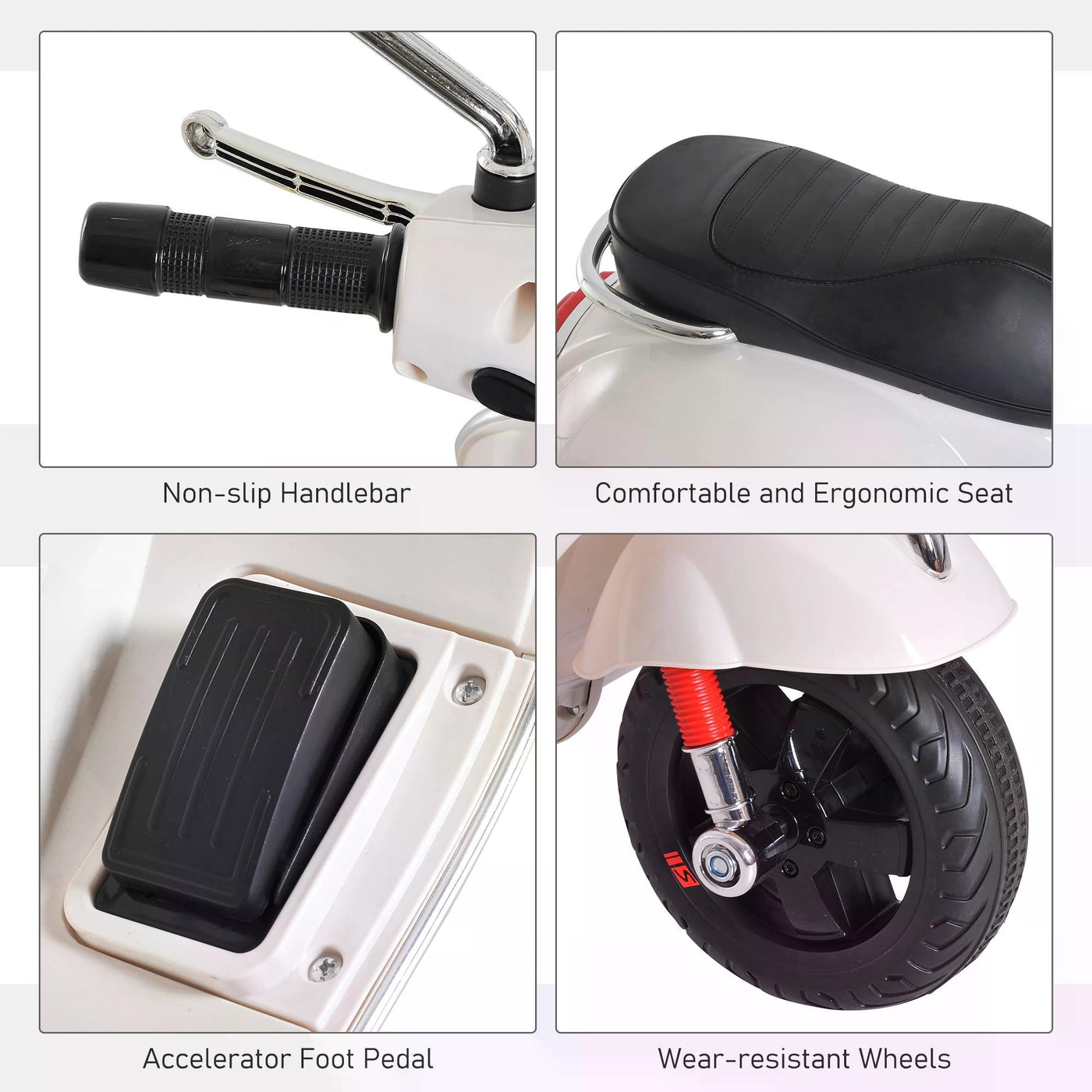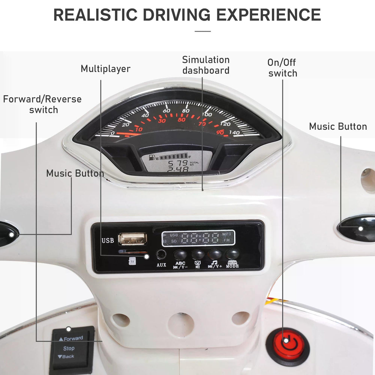 Adventure awaits children with this luxurious Vespa Ride-On! With 3km/h maximum drive speed is safe for children ages 3-6 years in age. This car provides a realistic experience for your child with its side mirrors, working horn & headlights, and a dashboard light. Bring this ride-on toy motorcycle home to help encourage your children to play outside more.