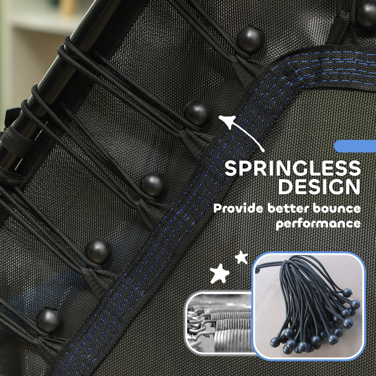 Enjoy hours of jumping joy with the HOMCOM kids trampoline – suitable for ages 3–10 years. It's a fun and active way to keep little ones entertained. Built with a strong, powder-coated steel frame, this trampoline is stable and secure. Safety comes first with the enclosed mesh net and padded poles to help prevent falls, while the bungee cord design replaces metal springs, so there are no sharp parts sticking out. Lightweight and easy to move, it's great for both indoor and outdoor play.