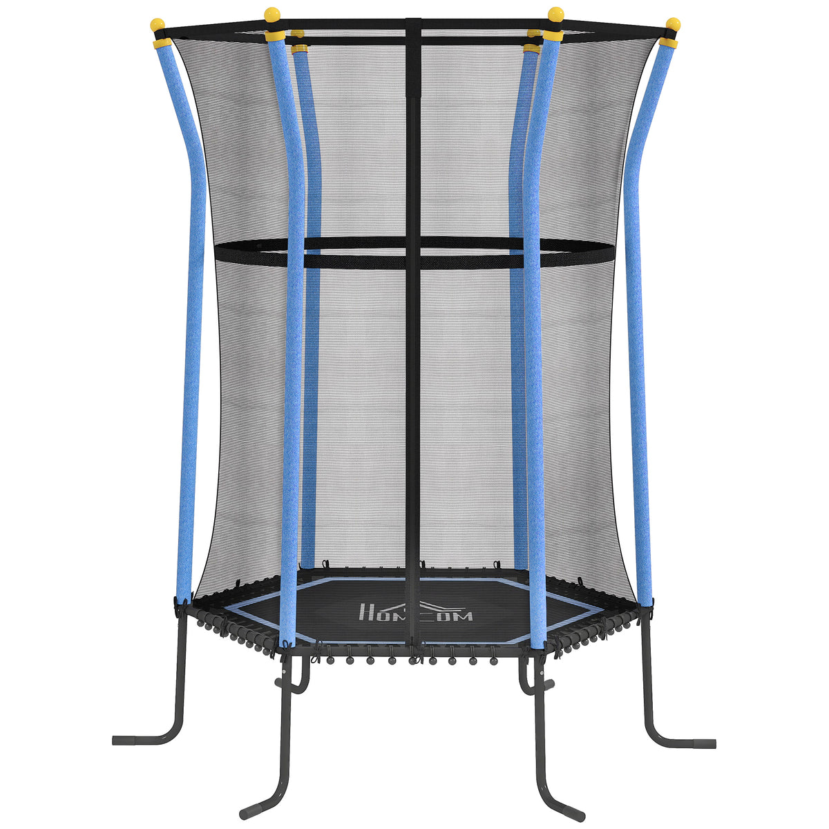 HOMCOM Kids Trampoline Mini Bouncer with Enclosure Safety Net For Ages 3-10 Years - Blue - Blue